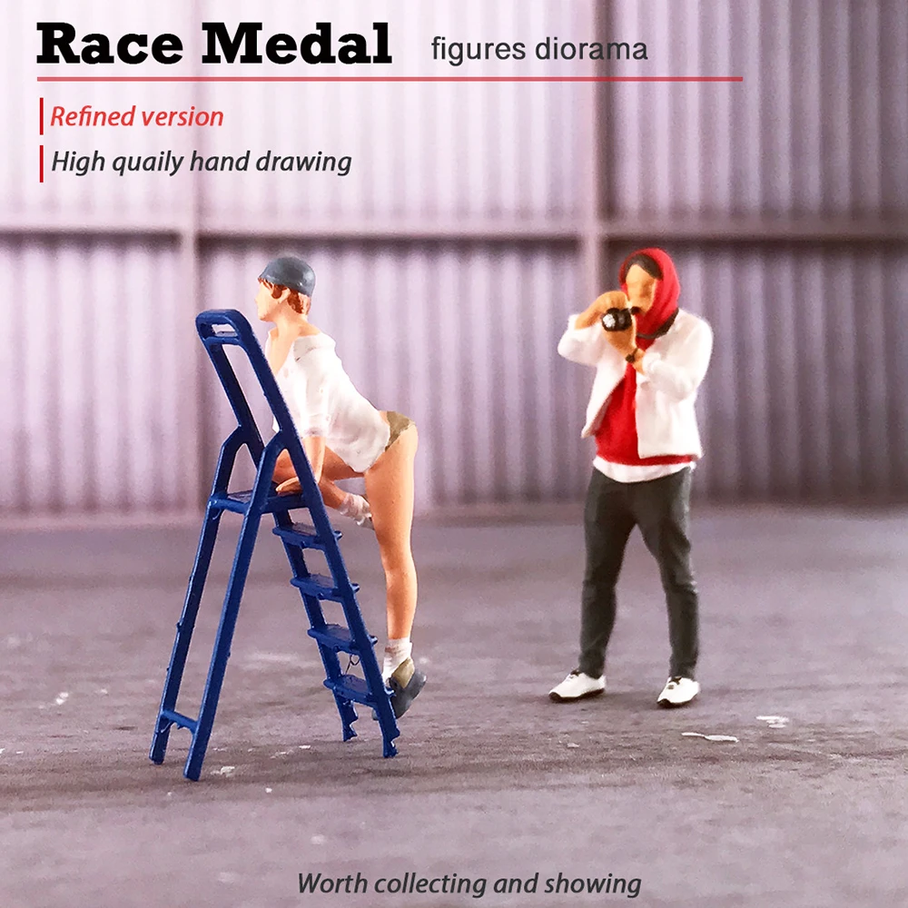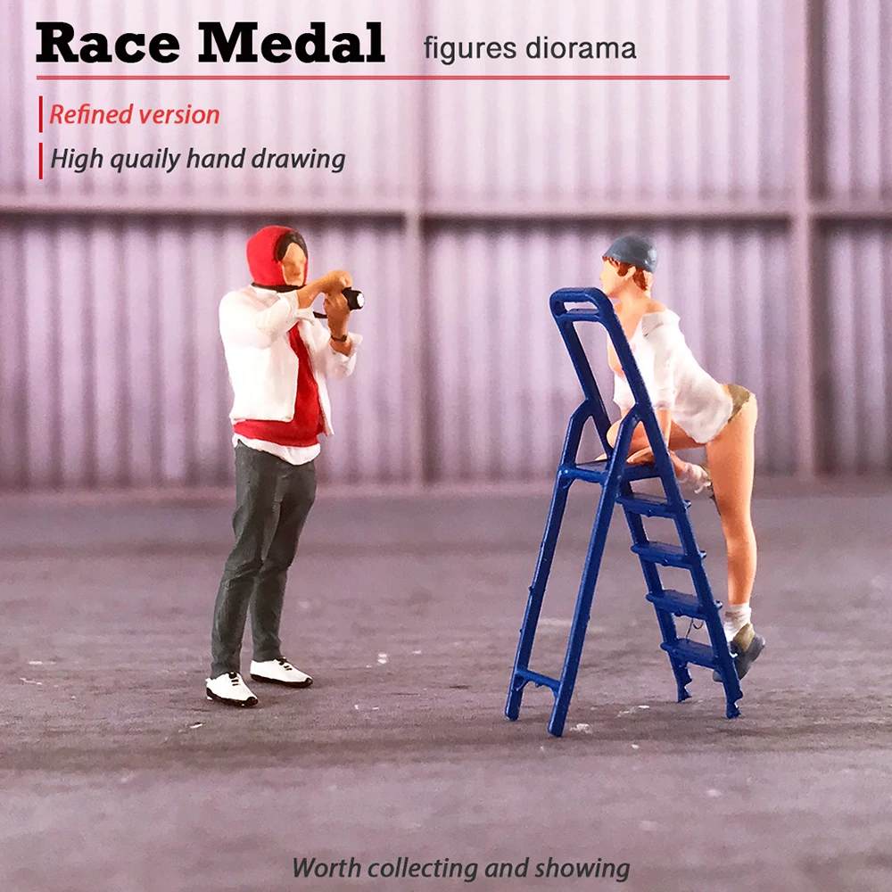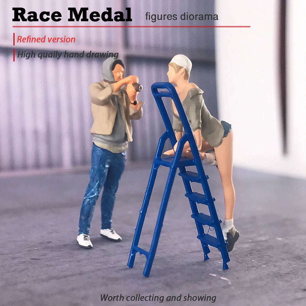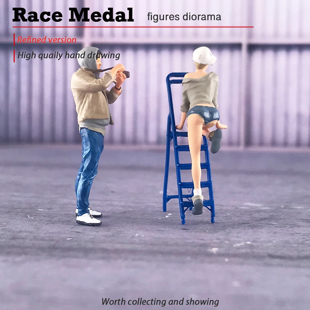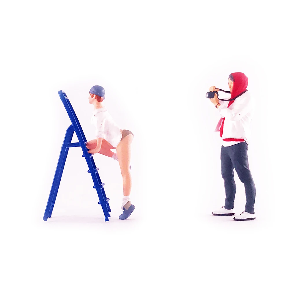 - Highly detailed miniature scene features 2 unisex figures, realistically representing a casual outdoor or studio photo session in a 1/64 scale.