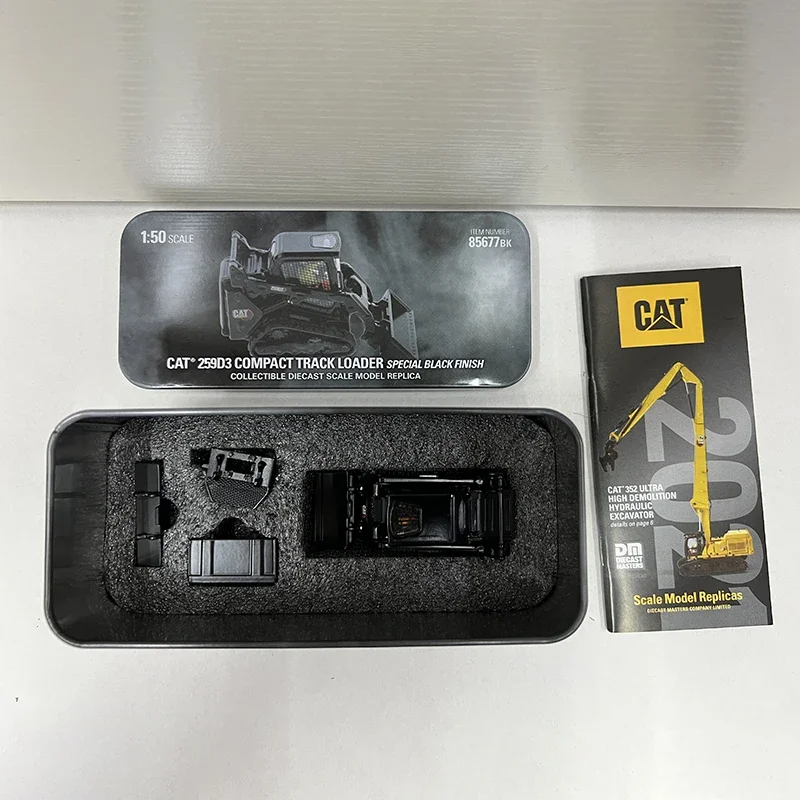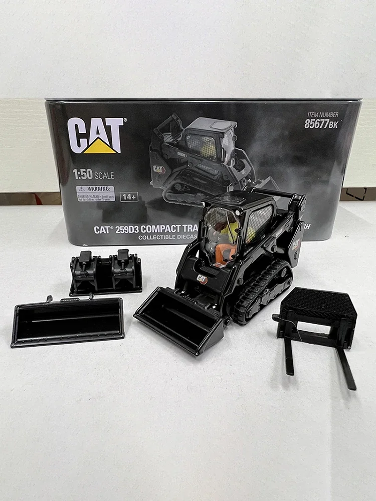 Immerse yourself in the world of construction with this highly detailed 1:50 scale diecast model of a CAT 259D3 compact wheel loader. Crafted with authentic Caterpillar yellow paint, it features a realistic cab interior with an operator figure, articulated arms with a coupler, and four interchangeable work tools: a general purpose bucket, industrial grapple bucket, light material bucket, and block fork. Measuring approximately 6.8 cm in length, 3.0 cm in width, and 4.1 cm in height, it showcases detailed tire tread design and trade dress. Packaged securely in a collectible full-color metal box with foam and cardboard protection, this model offers a polished, durable aesthetic perfect for enthusiasts and collectors alike.