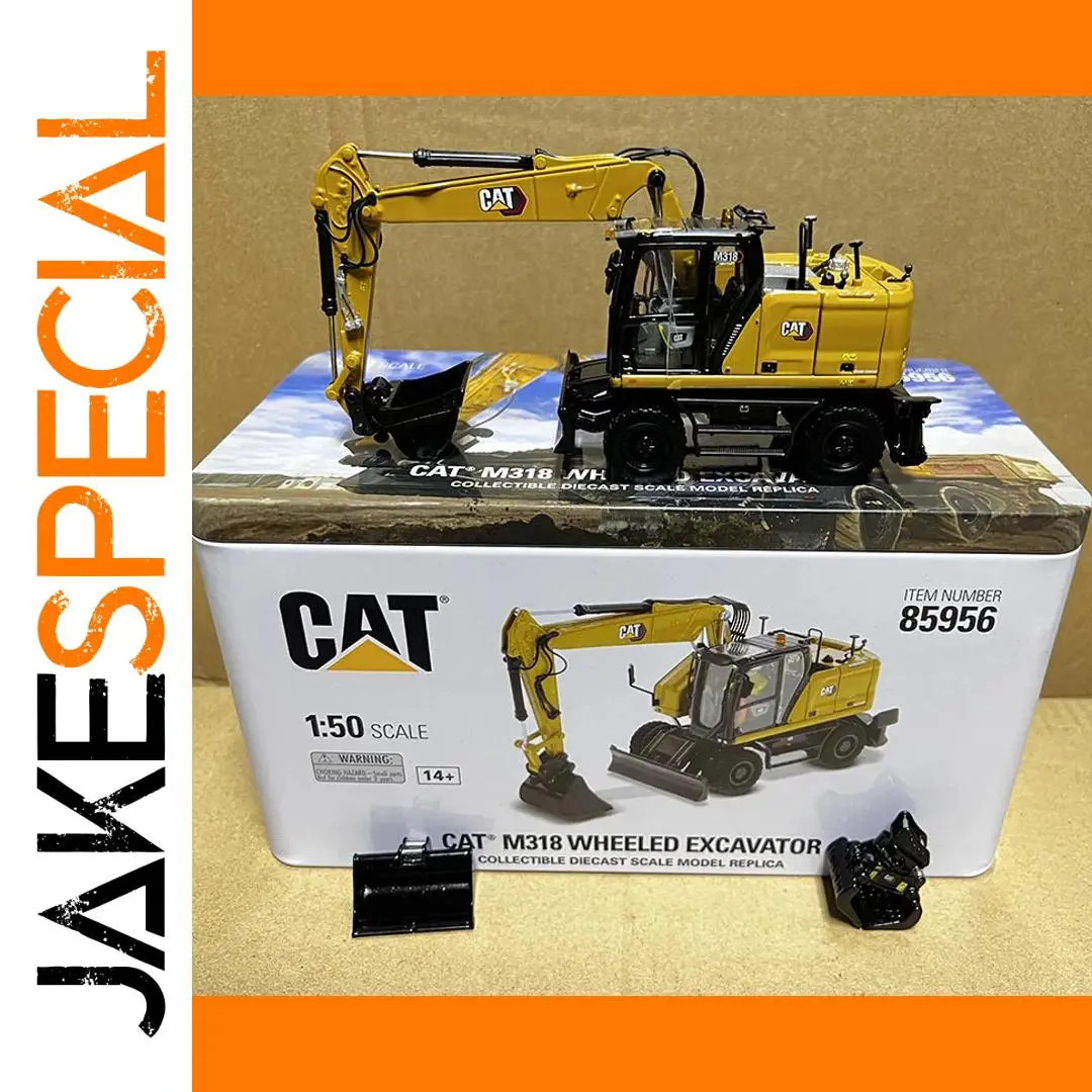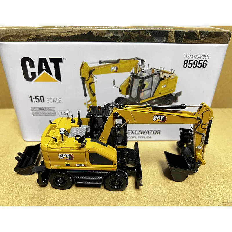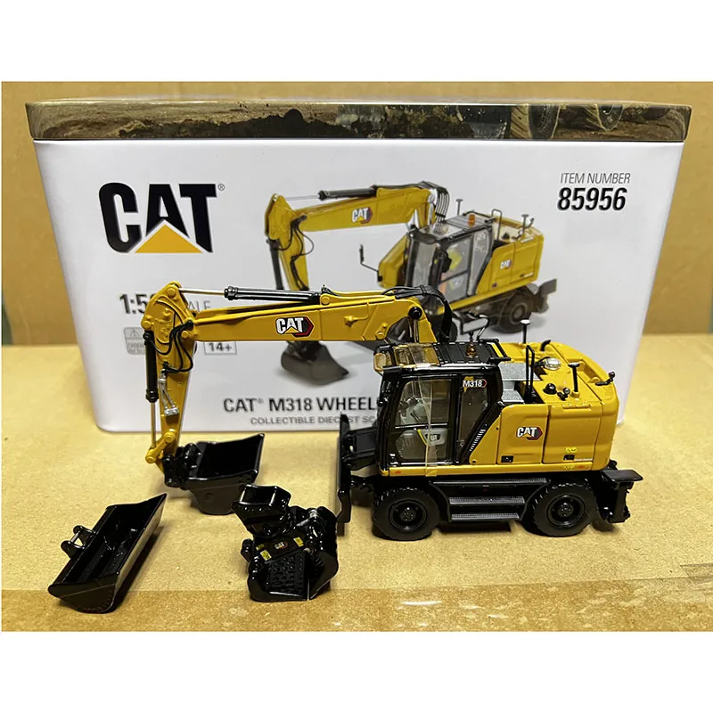 - Features a highly realistic yellow exterior with black undercarriage, arm, and bucket, accurately capturing the look of the Caterpillar M318 excavator.