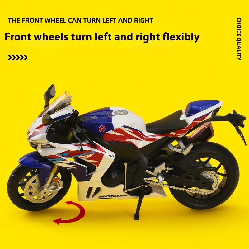 Step into the world of high-octane excitement with this exceptional CCA 1/12 Honda CBR1000RR-R simulated motorcycle model. Transport yourself to the thrilling realm of motorcycle racing as you admire the sleek white body, accented with bold red, blue, and grey graphics. Meticulously crafted from zinc alloy and plastic, its dynamic design boasts impressive details such as a sculpted seat, intricate exhaust system, and realistic chain links. Measuring 17.4 cm long, 6.2 cm wide, and 9.5 cm high, this model is perfect for display or as an addition to your collection. With no need for batteries, this model offers pure convenience, catering to both adult collectors and enthusiasts who appreciate fine craftsmanship.