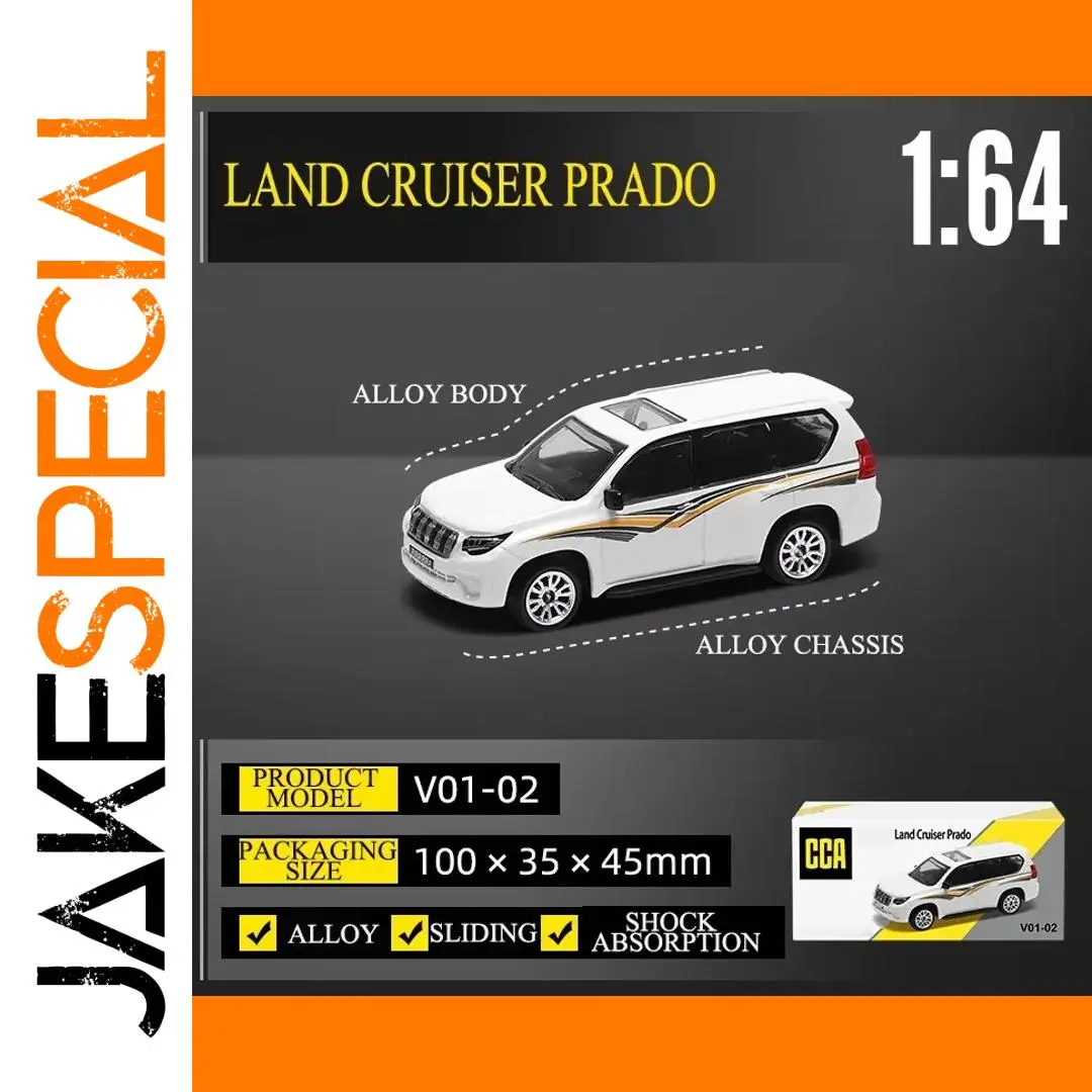 This exquisite diecast model of the Land Cruiser Prado, crafted in a 1:64 scale by CCA, stands out with its sleek white finish and distinctive gold stripe. The alloy body and chassis ensure durability, while the intricate detailing, including realistic headlights, a finely-sculpted grille, and a sunroof, bring the model to life. The black wheels shine with silver rims, closely resembling full-sized vehicle wheels. Perfectly sized for display, this model evokes a sense of pride for collectors, providing a unique addition to your collection or a gift for toy car enthusiasts. Embrace a piece of automotive elegance and craftsmanship that blends beauty with realism.