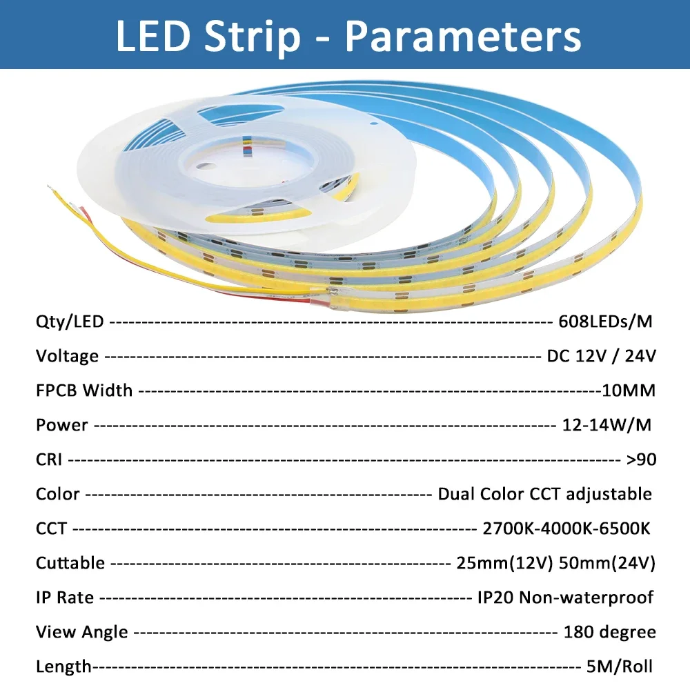 - Adjustable color temperature from 2700K warm white to 6500K cool white, controllable via a compatible external CCT controller for perfect ambiance.