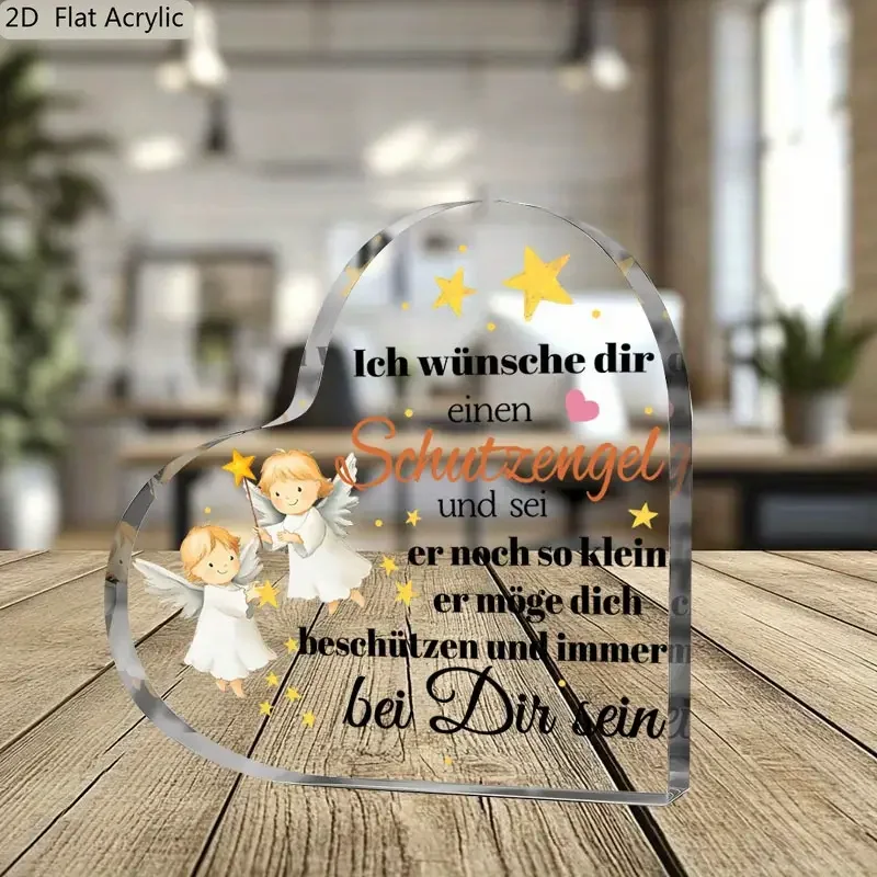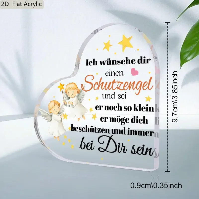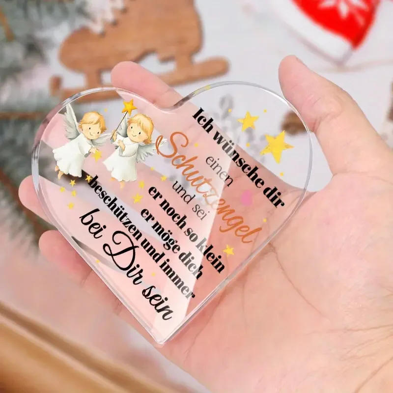 Imagine adding a touch of warmth and celestial charm to your home or office with this elegant acrylic plaque. Crafted from high-quality transparent plastic, this 2D flat sign features a whimsical design of two cheerful angels with blonde hair, white wings, and white robes. Surrounded by bright yellow stars and dots, it creates a lively, celestial scene that radiates positivity. A pink heart adds a soft sentimental touch, making it perfect for gifting or decorating during special occasions. Its sleek, rounded rectangle shape gives it a modern yet charming appearance. Suitable for use as a party centerpiece, holiday decoration, or a heartfelt gift, this piece effortlessly elevates any space with its cheerful and angelic theme.