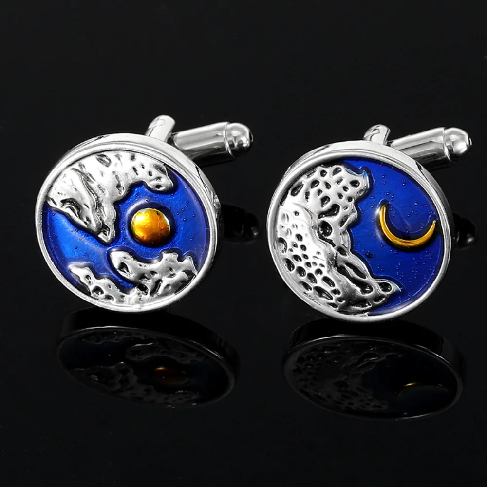 Embrace the celestial allure and add a touch of cosmic elegance to your wardrobe. These cufflinks are more than accessories—they're a reflection of your love for art and the night sky. Imagine the compliments you'll receive when you wear these unique pieces at your next formal event or casual outing. Whether as a gift or a personal treasure, they promise durability, style, and a sense of connection to the universe. Don't miss the opportunity to showcase your individuality with these beautiful, celestial-inspired cufflinks—order now and elevate your look effortlessly.