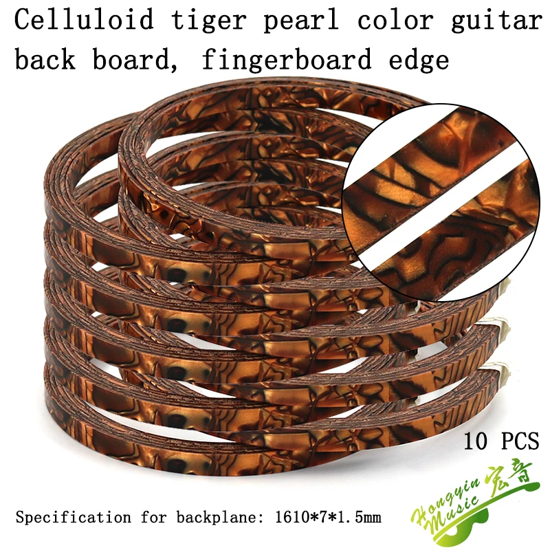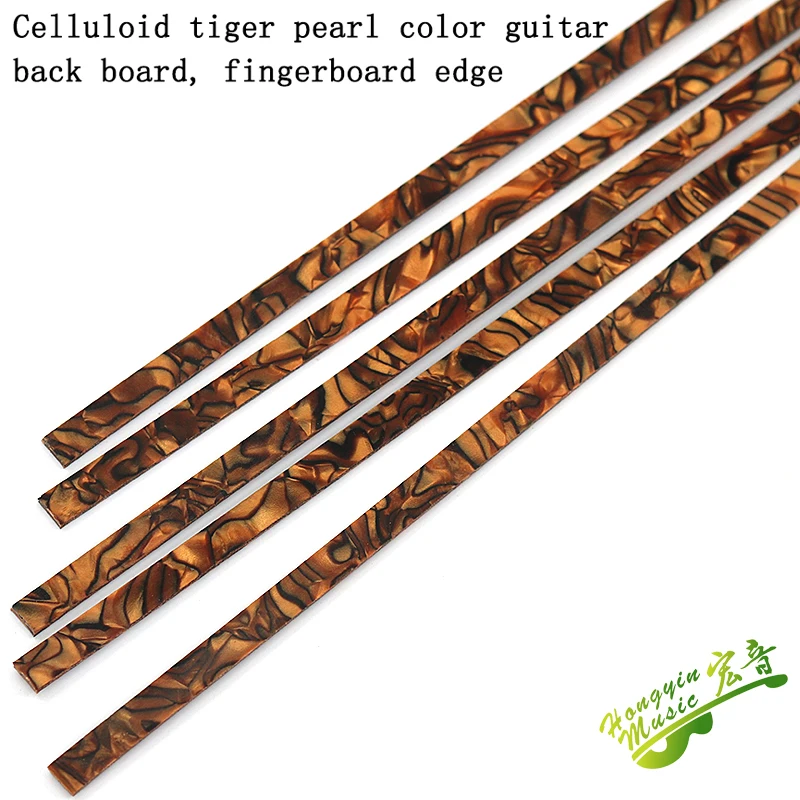 Enhance your guitar’s appearance with our high-quality celluloid edge and fingerboard wrap strips, available in stunning shellfish pearl in white, pink, and tiger grain pearl. Measuring 1610 mm x 7 mm x 1.5 mm (white, pink, and shellfish pearl) and 805 mm x 7 mm x 1.5 mm (tiger grain pearl), these glossy, reflective strips are perfect for binding, fingerboard edges, and backboard middle lines during guitar construction. Designed for custom projects, they create an elegant, upscale look with a shimmering, multi-light sheen. Suitable for skilled luthiers and enthusiasts, they offer a luxurious finish but are not meant for decorating finished guitars without inlay grooving.
