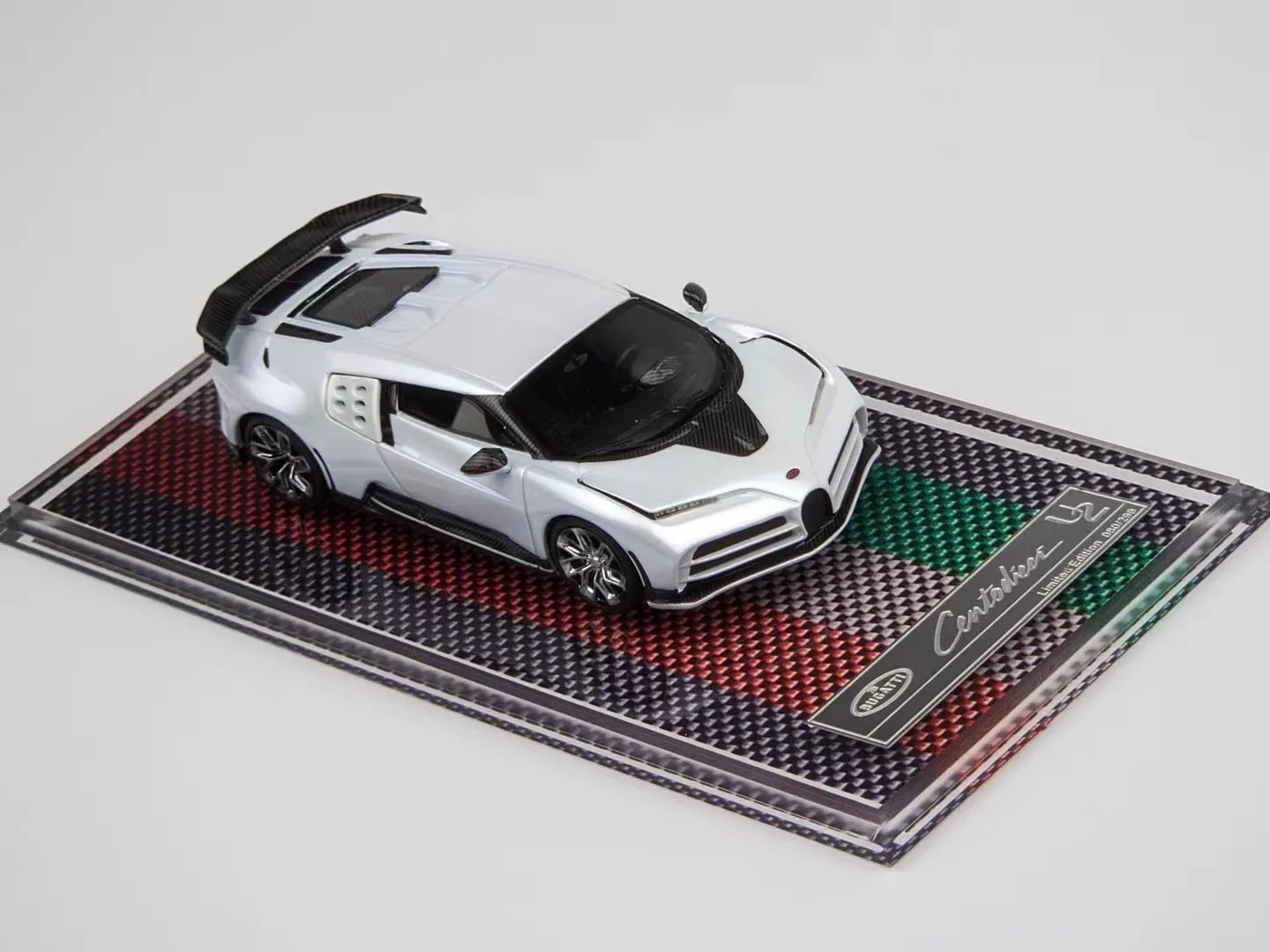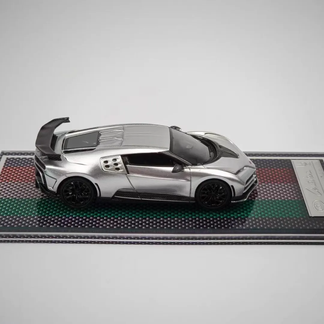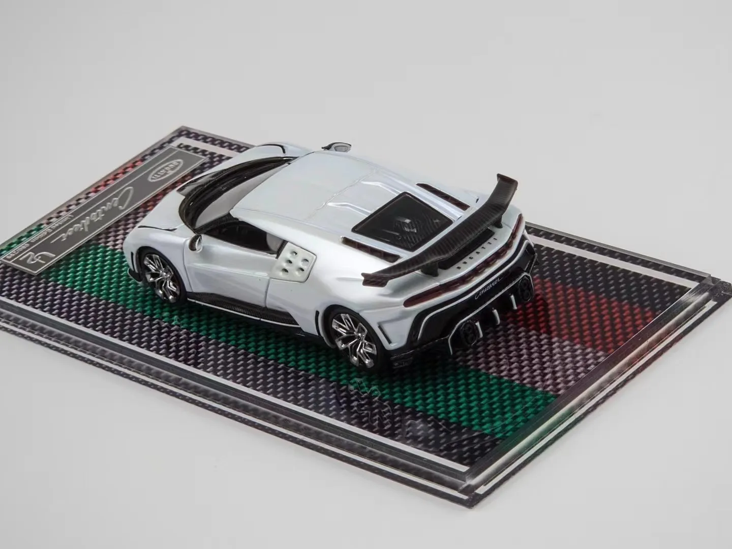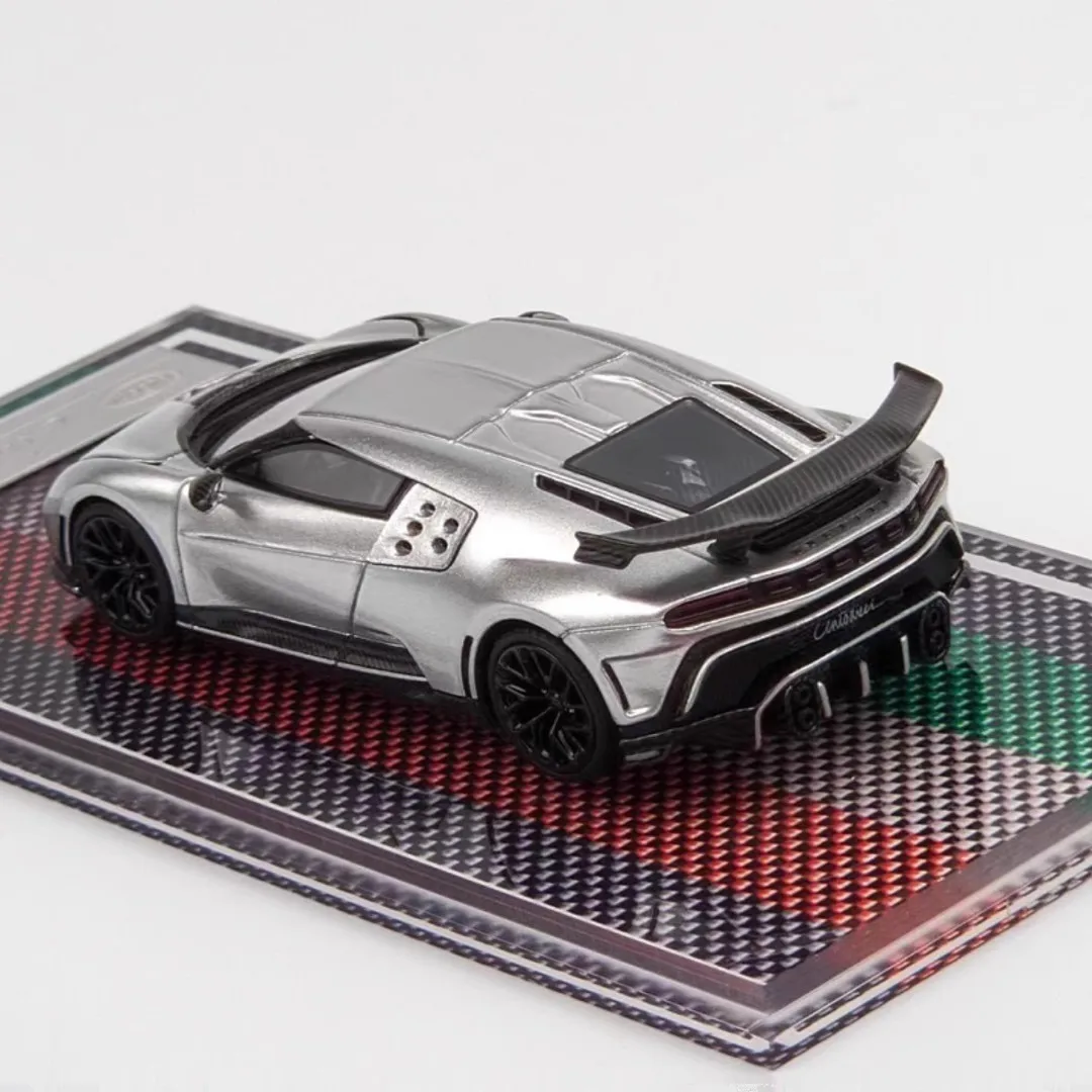Experience the striking elegance and intricate design of this 1:64 scale Centodieci 110 commemorative Edition supercar model. Available in two captivating finishes—reflective metallic silver and sophisticated matte white—this static resin model is perfect for high-end collectors. Each intricately crafted piece measures approximately 7 cm in length and showcases a sleek, aerodynamic form, making it a stunning addition to any display. The beautiful detailing and black accents add depth and character to its high-performance aesthetic, ensuring it stands out in your collection. With a textured carbon fiber base featuring a gradient pattern of green and red, the model brings an air of sophistication to your space.