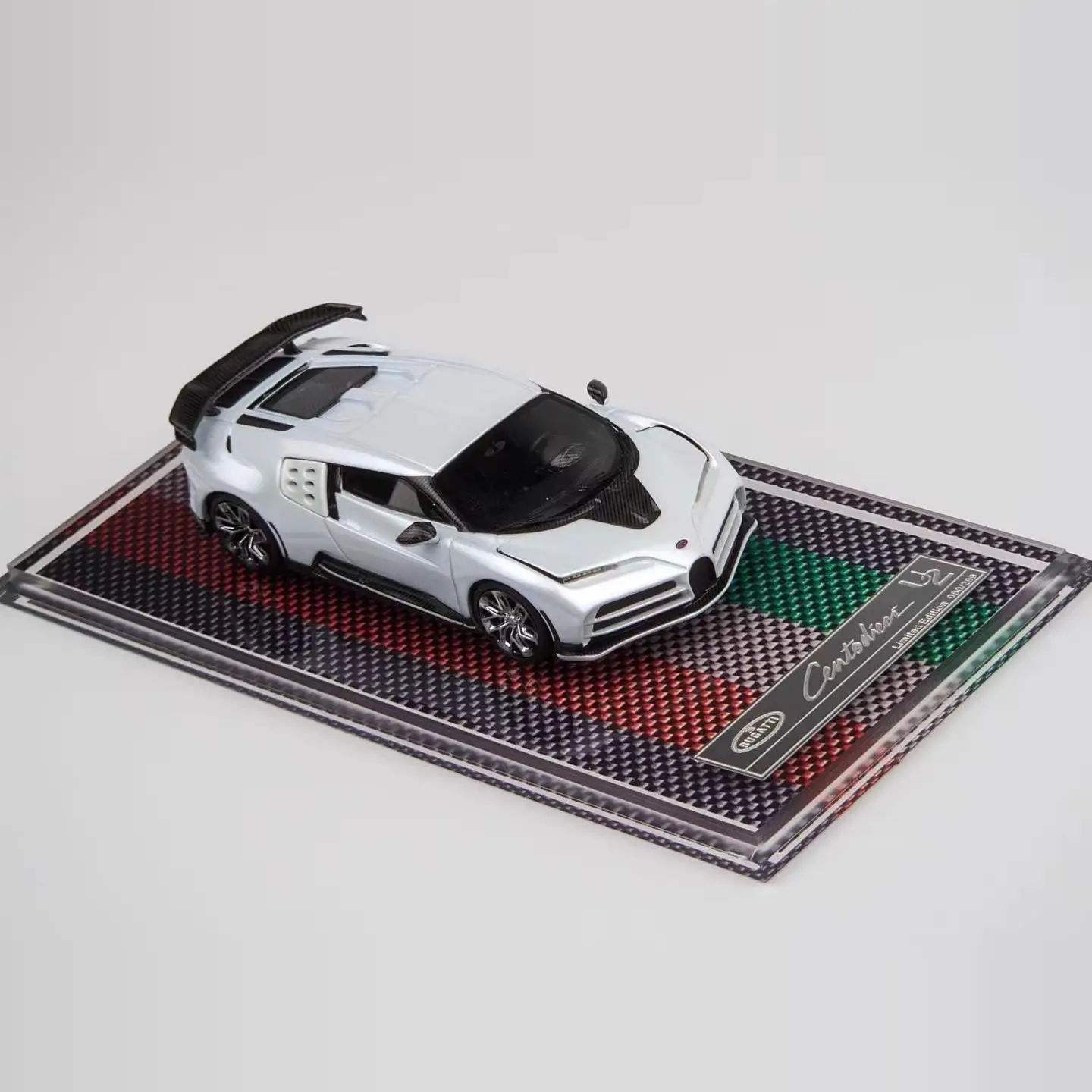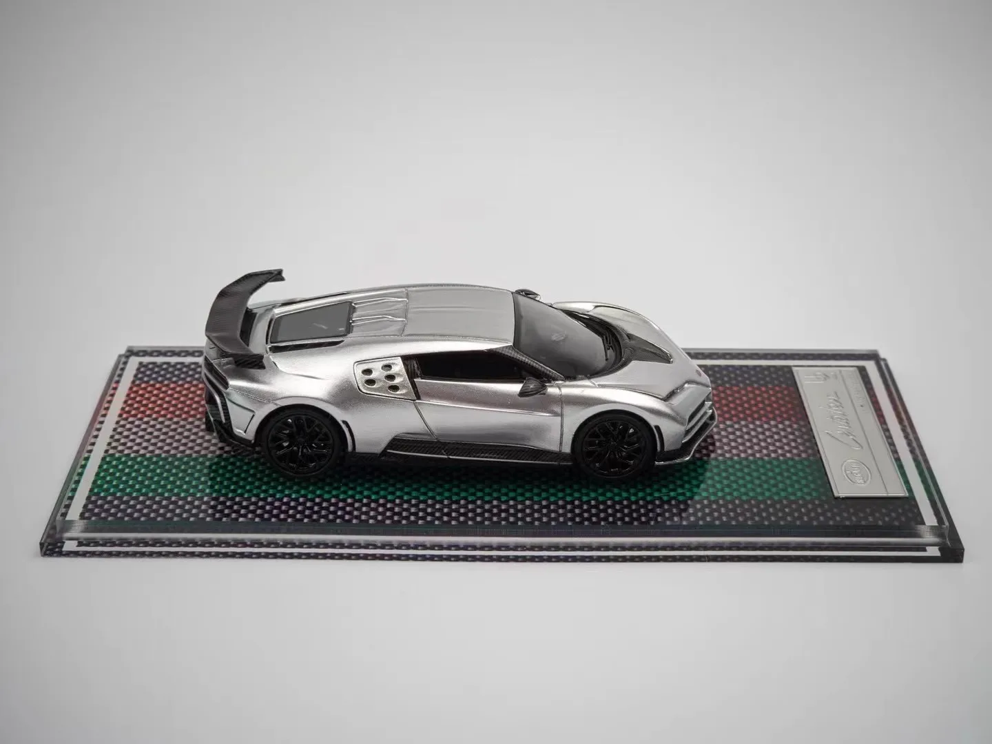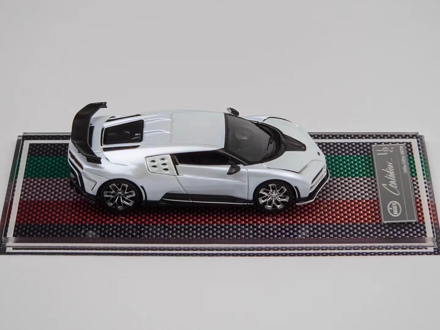 Experience the striking elegance and intricate design of this 1:64 scale Centodieci 110 commemorative Edition supercar model. Available in two captivating finishes—reflective metallic silver and sophisticated matte white—this static resin model is perfect for high-end collectors. Each intricately crafted piece measures approximately 7 cm in length and showcases a sleek, aerodynamic form, making it a stunning addition to any display. The beautiful detailing and black accents add depth and character to its high-performance aesthetic, ensuring it stands out in your collection. With a textured carbon fiber base featuring a gradient pattern of green and red, the model brings an air of sophistication to your space.