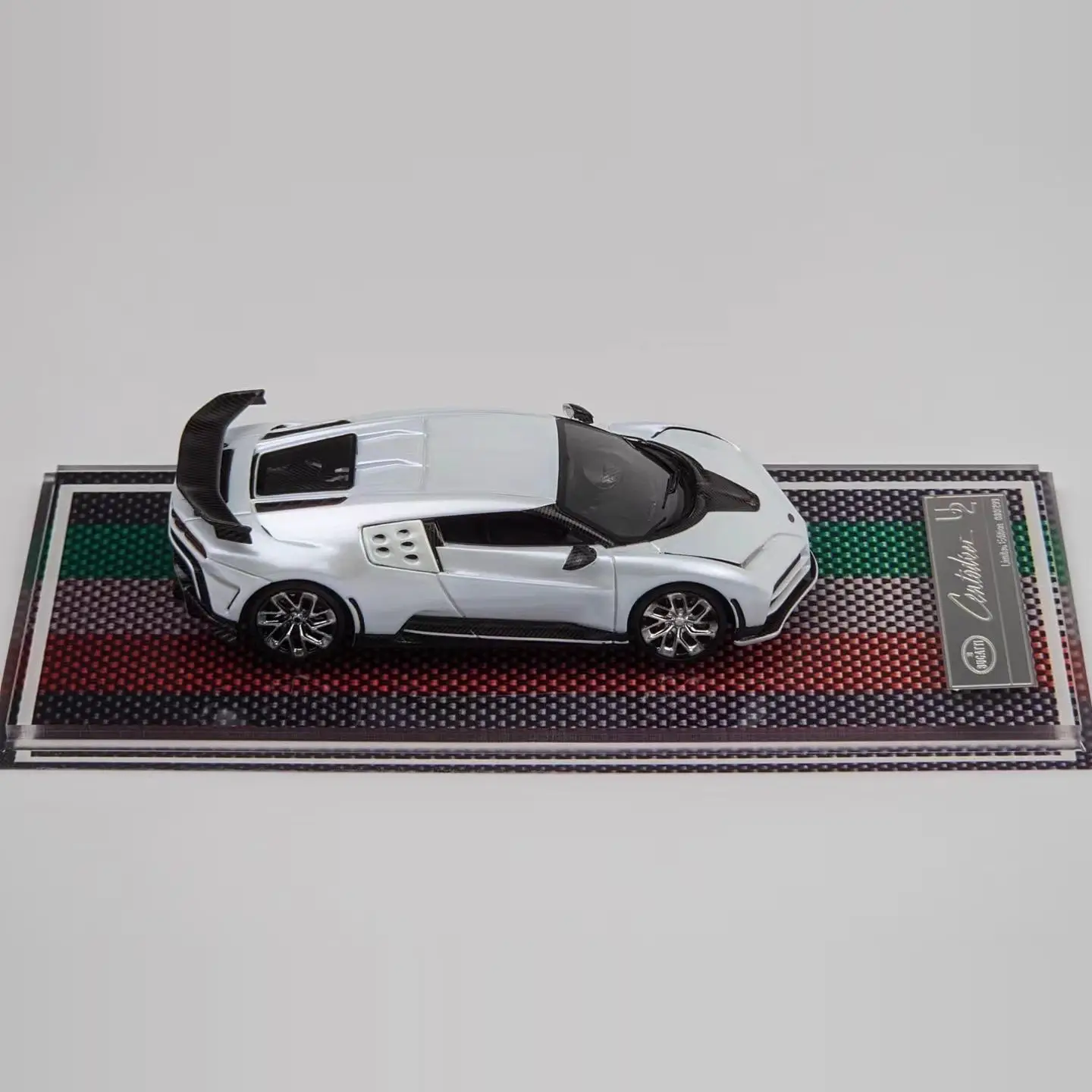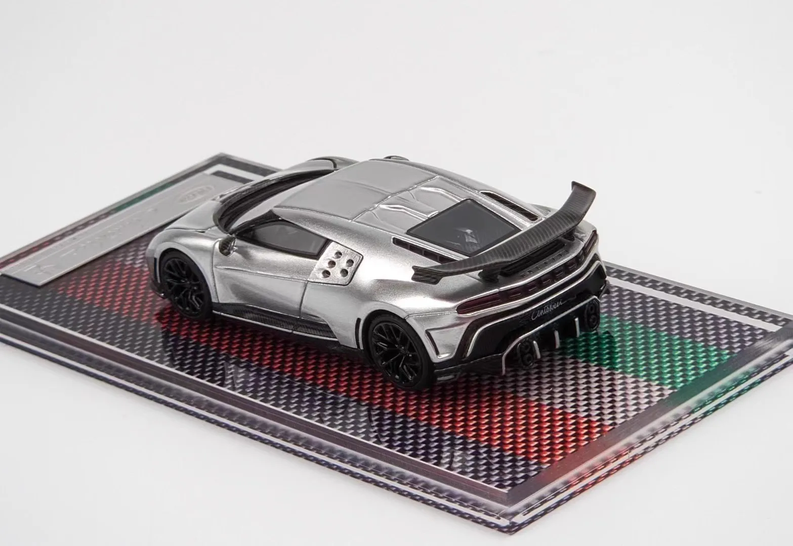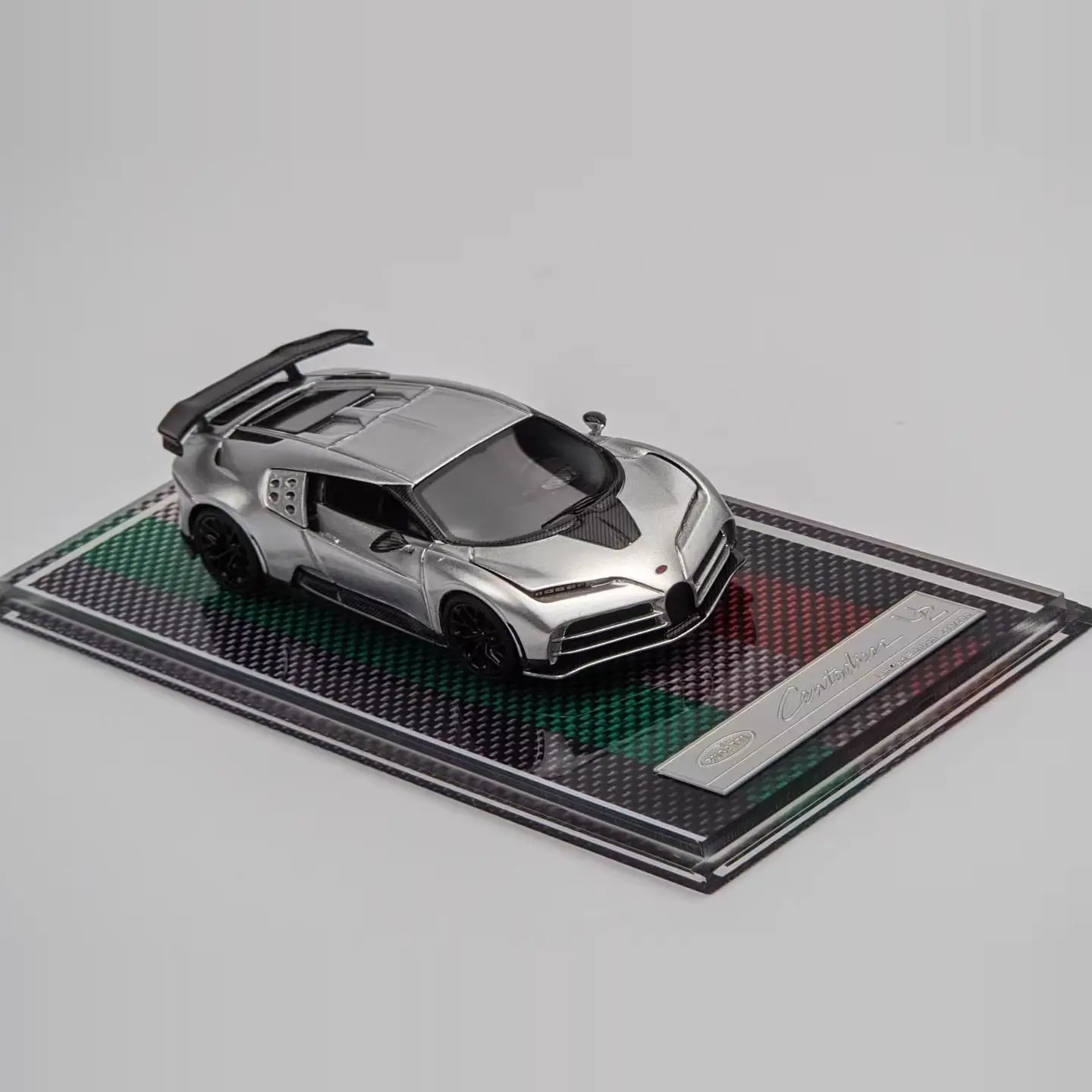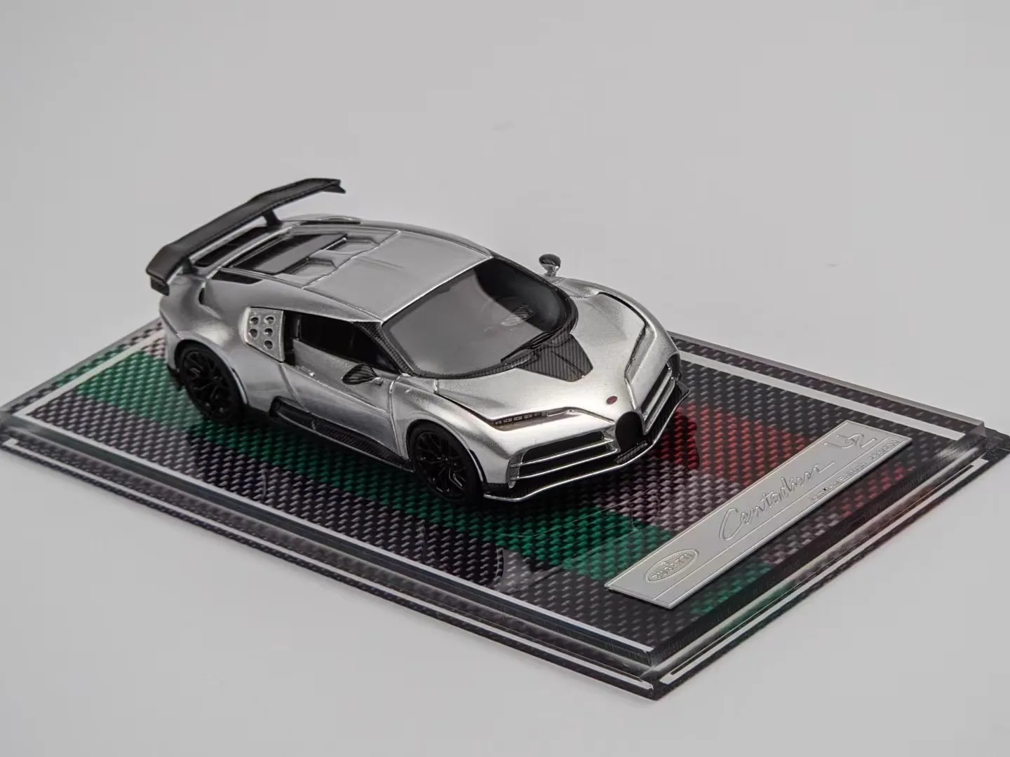 Experience the striking elegance and intricate design of this 1:64 scale Centodieci 110 commemorative Edition supercar model. Available in two captivating finishes—reflective metallic silver and sophisticated matte white—this static resin model is perfect for high-end collectors. Each intricately crafted piece measures approximately 7 cm in length and showcases a sleek, aerodynamic form, making it a stunning addition to any display. The beautiful detailing and black accents add depth and character to its high-performance aesthetic, ensuring it stands out in your collection. With a textured carbon fiber base featuring a gradient pattern of green and red, the model brings an air of sophistication to your space.