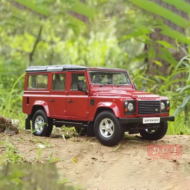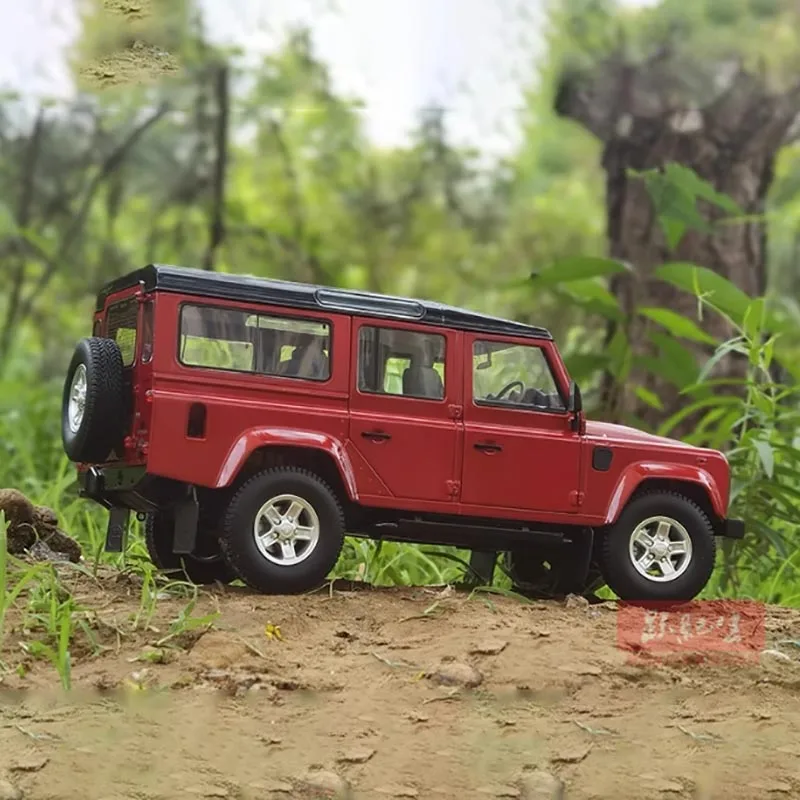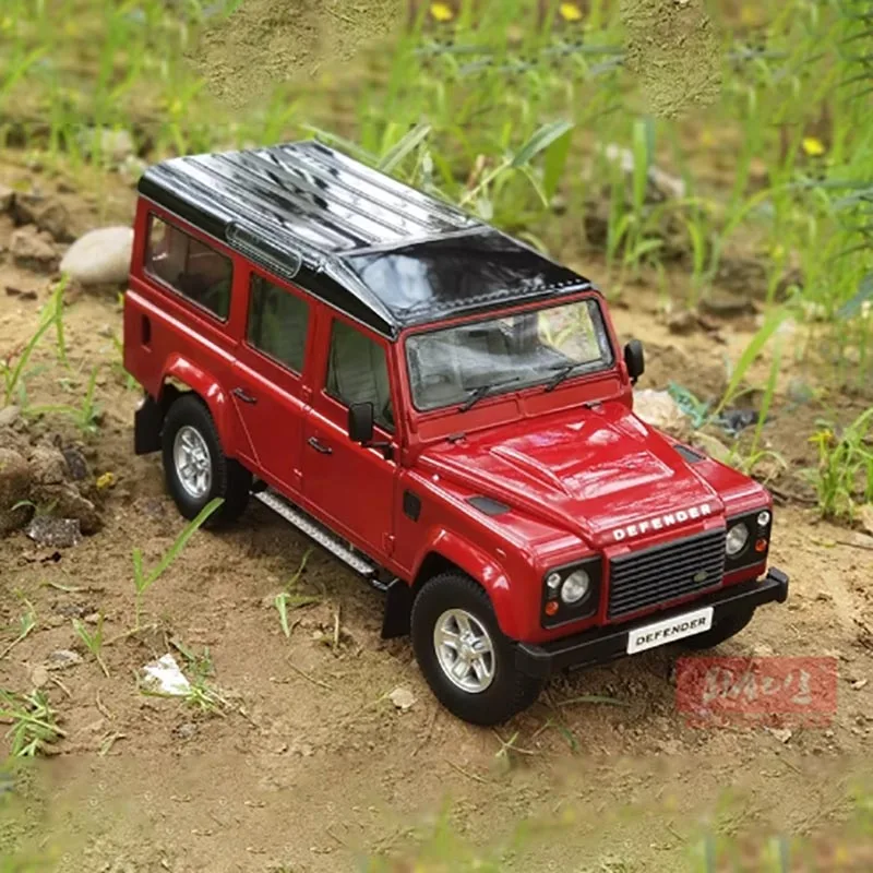 Experience the rugged charm of adventure with this exquisite diecast model of the Century Dragon Defender 110 Off-road vehicle, crafted in a 1:18 scale. Painted in a vibrant red with a bold black roof, this model beautifully exemplifies the iconic shape of the Defender. Every detail, from the prominent front grille to the textured rubber wheels mounted on silver rims, invites you to appreciate its design. Measuring approximately 25 cm in length, 11.2 cm in width, and 11.5 cm in height, this high-quality alloy and plastic model offers a durable yet elegant addition to any collection or display.