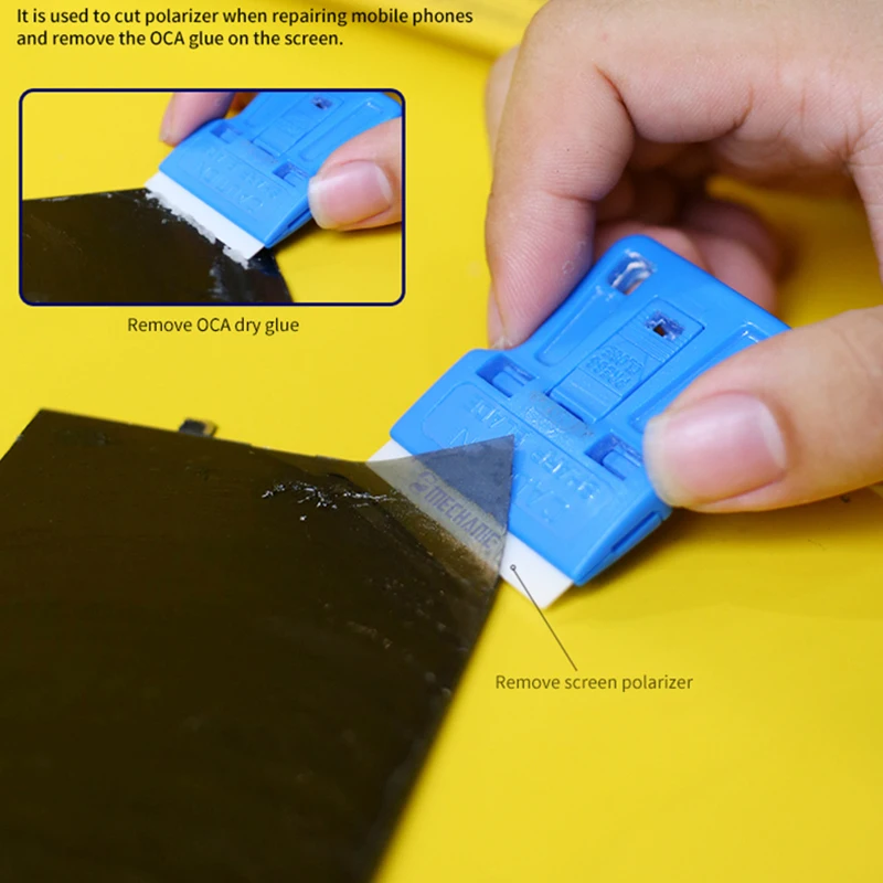 - The blades are sharply designed for precise removal of polarizers and OCA glue, minimizing damage and maximizing efficiency during repairs.