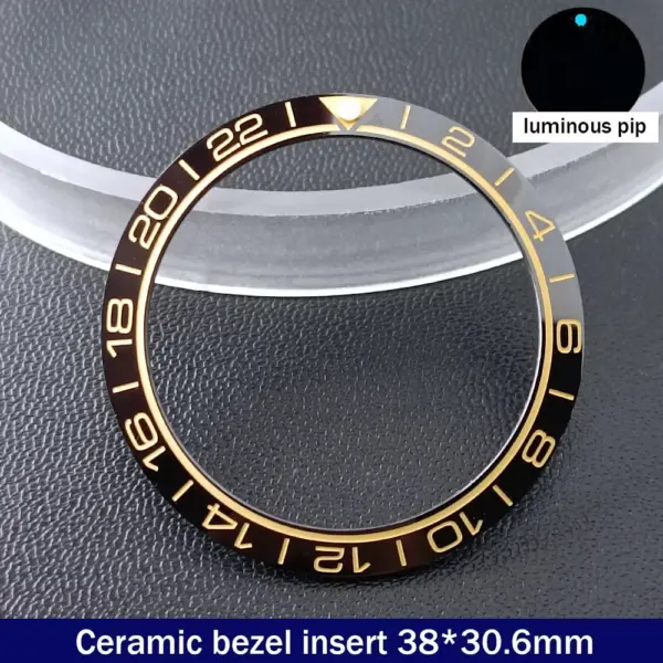 The Sloping 38mm*30.6mm Ceramic Bezel Insert is the perfect upgrade for your 40mm men's diving or GMT watch. Designed for those who appreciate quality, this insert boasts a sloping design that enhances not only the watch’s aesthetics but also its functionality. Made from high-quality ceramic aluminum, it ensures durability and resistance to scratching while being easy to install. Imagine seamlessly transitioning your watch from ordinary to extraordinary with this essential accessory that ensures your timepiece stands out, making every moment stylish. You can trust that this bezel insert will truly elevate your watch game.