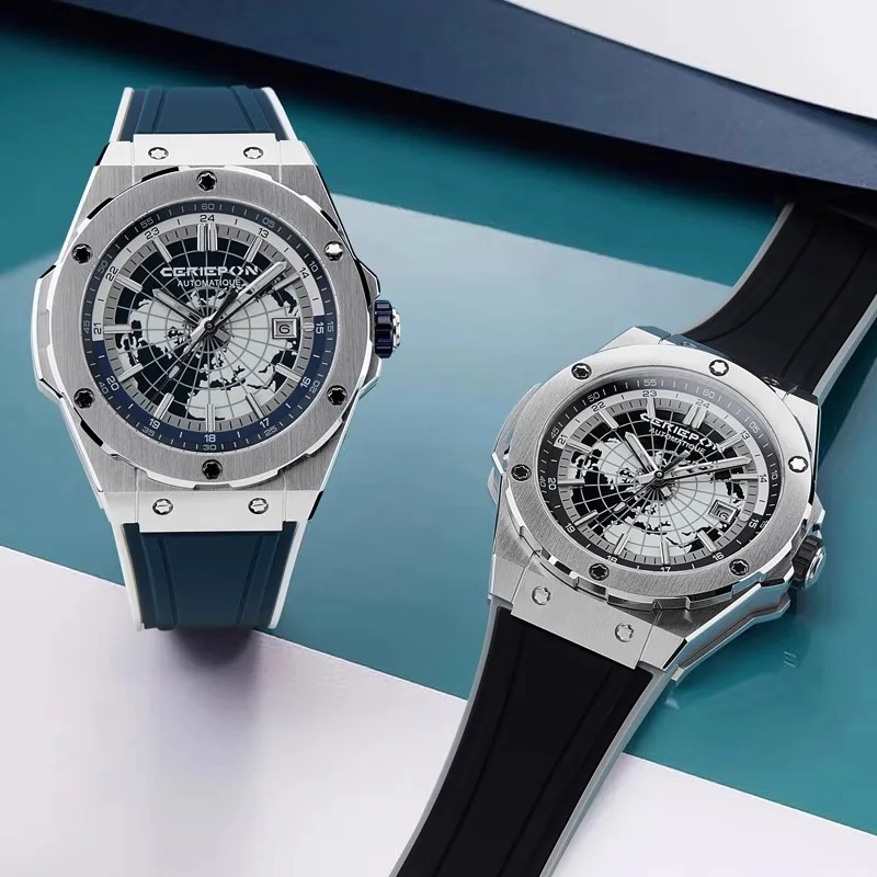 Imagine wearing the CERIEPON Men's Watch, a stunning blend of sporty elegance and functionality. This sophisticated timepiece features a polished stainless steel case with a 43.5mm diameter, perfectly complemented by a unique, double-layer brass dial reminiscent of planetary designs. Enjoy the durability of a sapphire crystal window that protects the intricate Arabic numeral markers, all while marveling at the automatic self-wind movement. With a calendar function and 50M water resistance, this watch is perfect for daily wear and adventure. Picture yourself confidently checking the time while embracing the stylish sophistication this watch brings to your wrist.