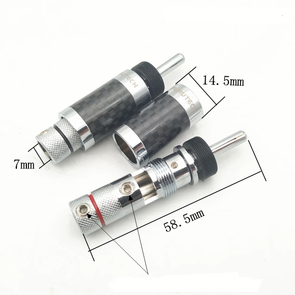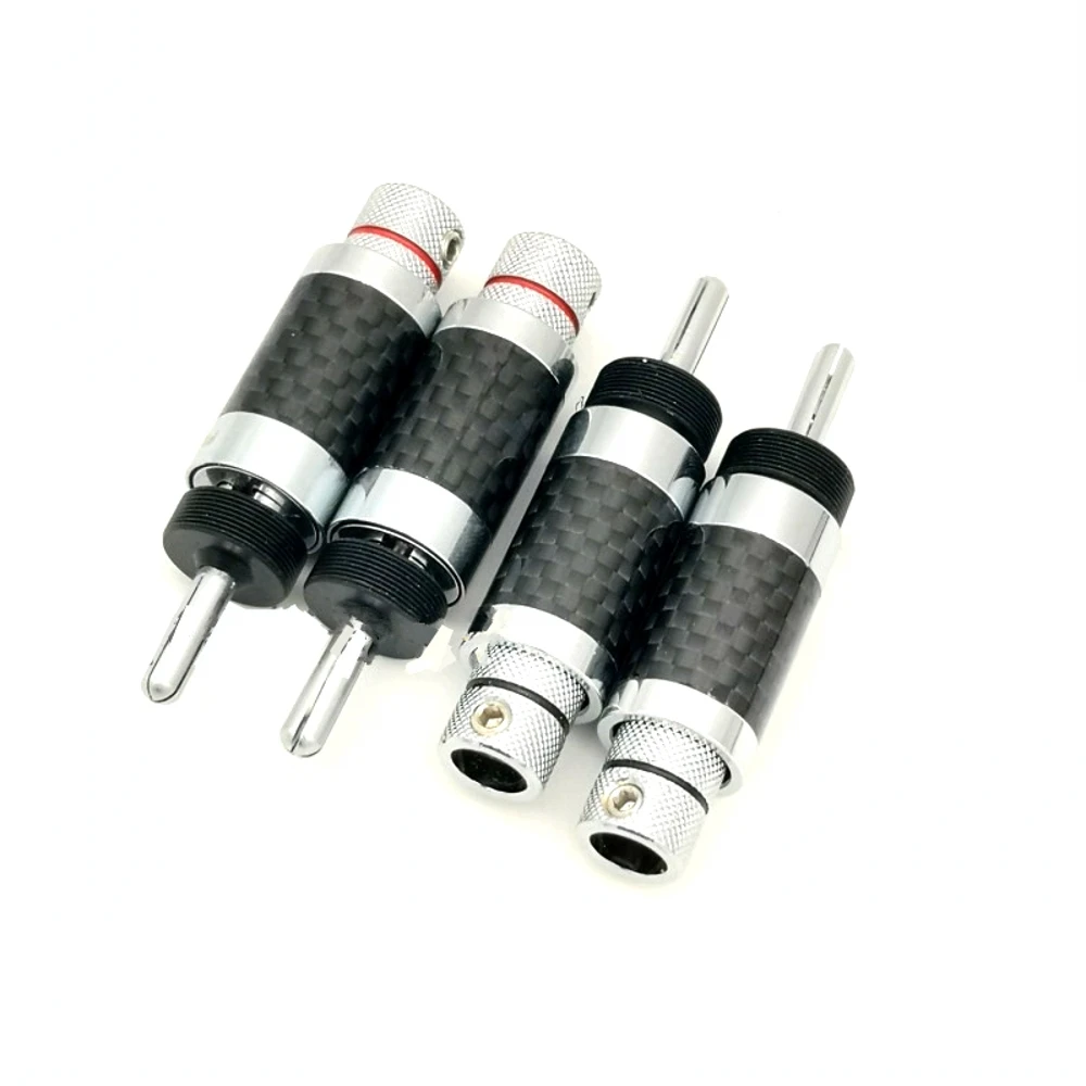 Elevate your audio experience with the CF 202(R) Rhodium Banana Plugs Set, designed for discerning audiophiles seeking superior sound quality. This set of four premium connectors features a stunning carbon fiber body that not only looks modern but also provides excellent damping. The connectors sport rhodium-plated tips, enhancing conductivity and delivering clear sound. Crafted from durable non-magnetic stainless steel, these plugs ensure secure connections via screw-fixed or welded contacts. With compatibility for various audio systems and a maximum specific line diameter of 7mm, these plugs are perfect for your high-fidelity needs. Make the CF 202(R) an integral part of your audio setup and listen as it was intended.