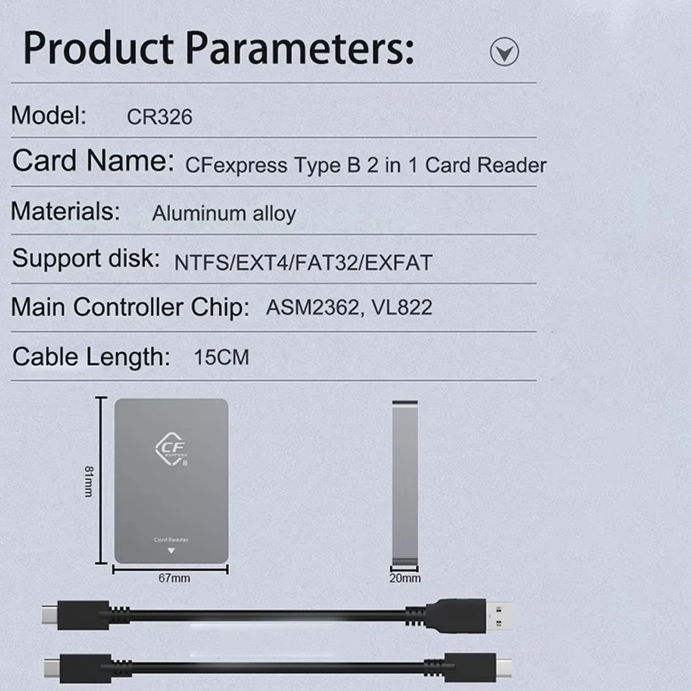 - Compatible with CFexpress Type B and XQD memory cards, as well as multiple disk formats including NTFS, EXT4, FAT32, and exFAT for versatile use across different devices.