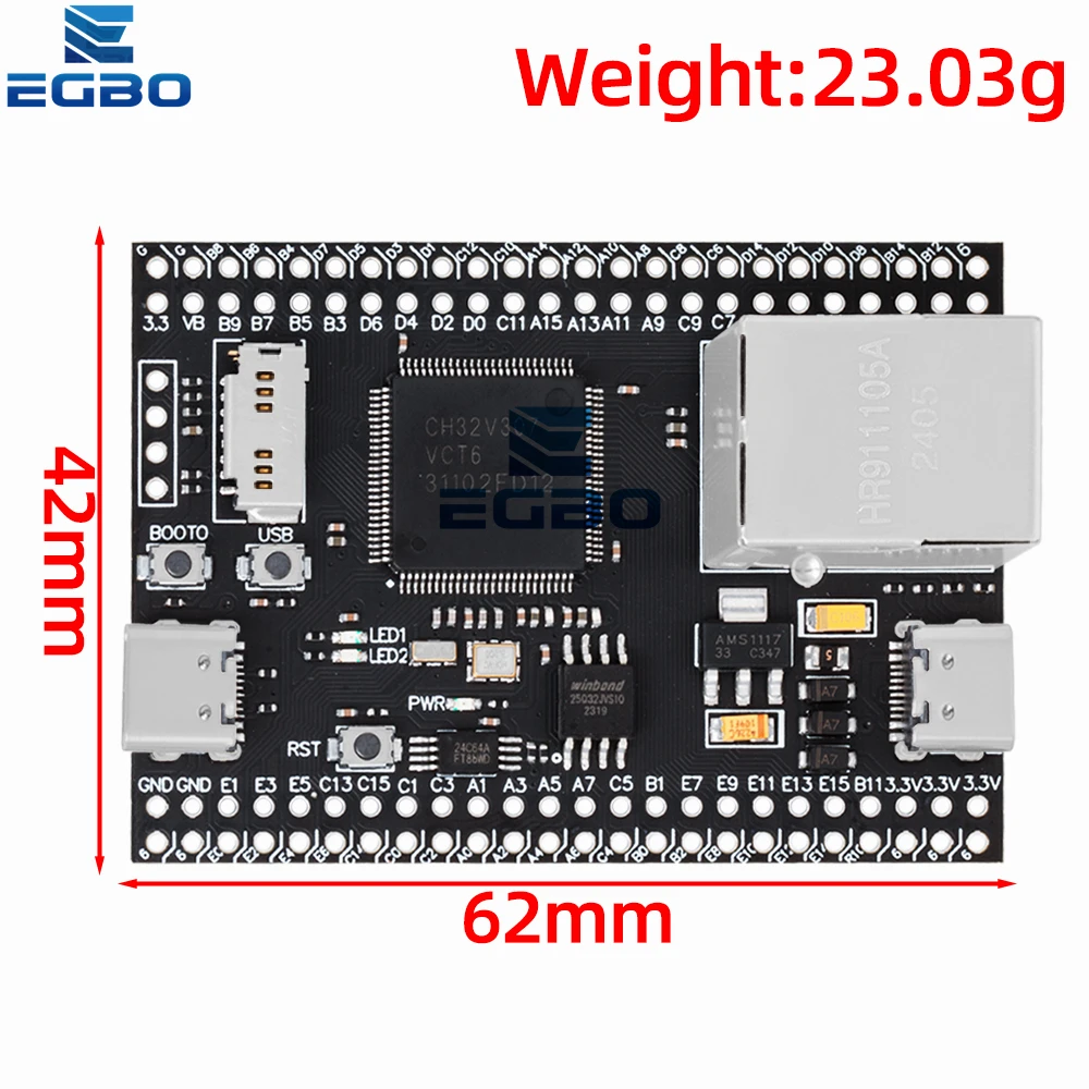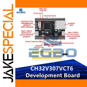 - Incorporates a high-performance 32-bit RISC-V core CH32V307VCT6 for advanced embedded processing tasks. It operates efficiently at industry-standard voltages and supports complex applications with ease.