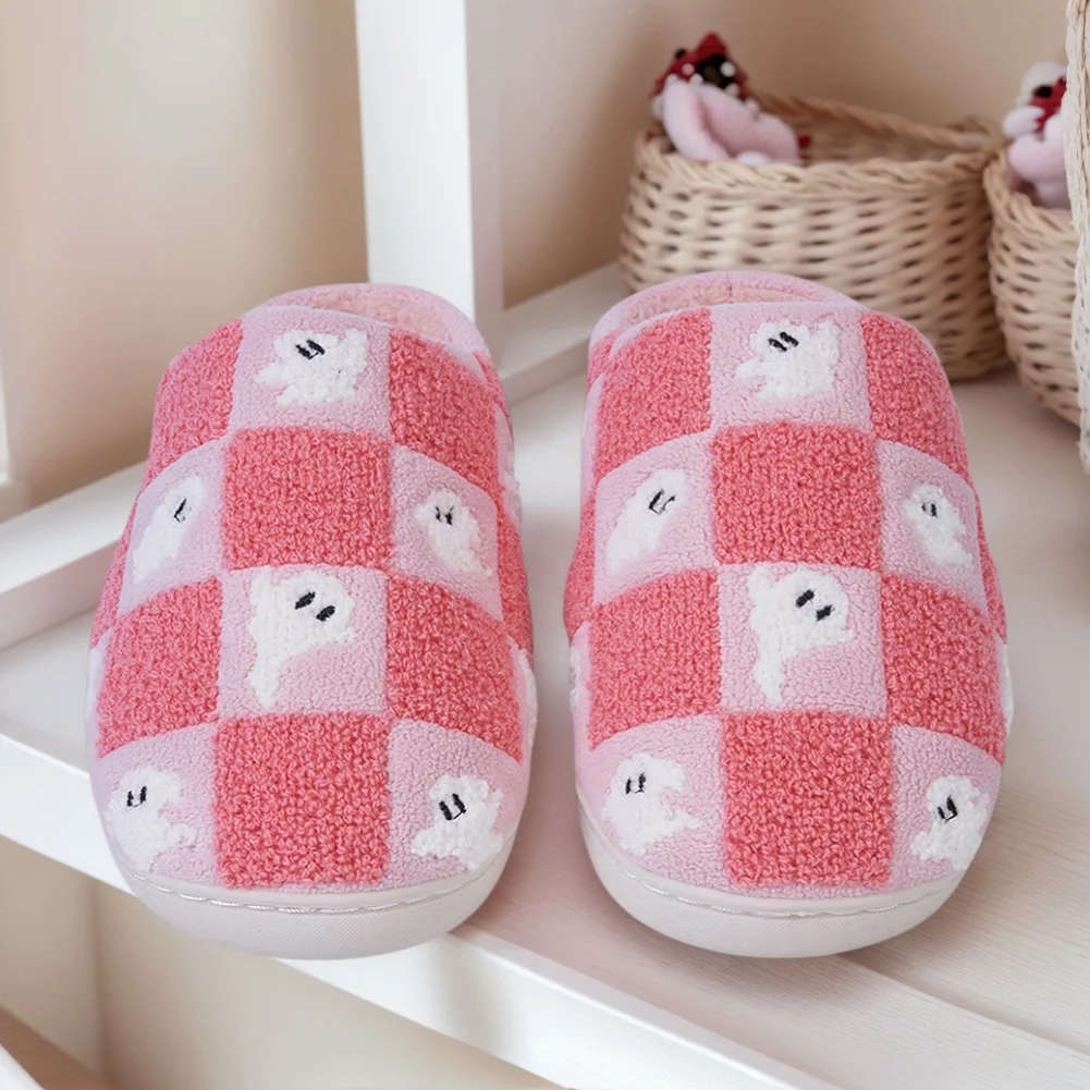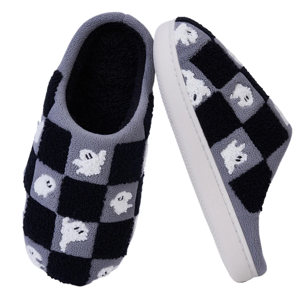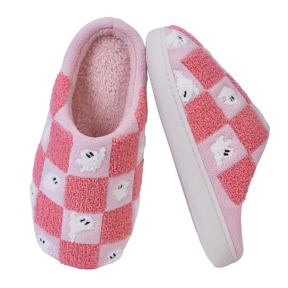 Step into ultimate relaxation with this pair of checkered plush slippers, designed to embrace your feet in warmth and softness. Featuring a classic black and pink checkered pattern, these slippers blend timeless style with a seasonal, playful aesthetic. The closed-toe design, combined with a plush lining, offers a gentle, cushioned feel that enhances indoor comfort during chilly days. Lightweight and breathable, they are perfect for lounging at home, traveling, or casual indoor wear. The non-slip ethylene vinyl acetate sole ensures safety across various surfaces, giving you confidence with every step. Transform your comfort routine and enjoy the cozy warmth these slippers provide during your relaxing moments indoors.