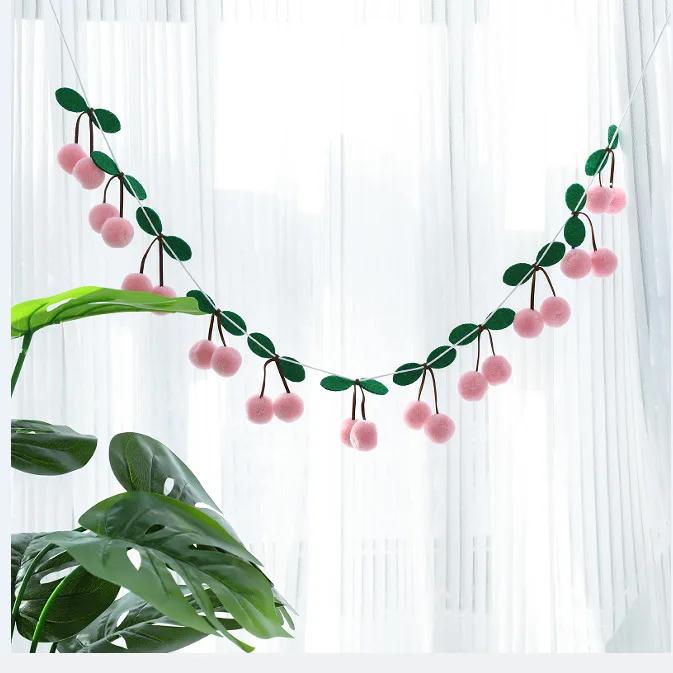 Imagine adding a burst of vibrant, playful charm to your space with this beautifully handmade cherry felt ball garland. Crafted from soft non-woven fabric, each cheerful ornament measures approximately 5×4.5cm, creating a textured, tactile experience that invites touch and admiration. The colorful palette includes wine red, yellow, red, pink, orange, and dark pink, evoking the freshness of a fruity orchard. Draped thoughtfully across walls, windows, or party tables, this garland transforms any setting into a lively, festive scene. Perfect for celebrations, nursery decoration, or adding a cozy touch to your everyday decor, it balances fun and elegance effortlessly, becoming a memorable detail in your favorite spaces.
