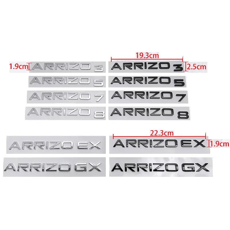 Transform the look of your Chery electric vehicle with this set of premium rear trunk badges, crafted for models like ARRIZO 3, 5, 7, 8, EX, and GX. Designed to seamlessly blend with your car's sleek finish, these badges feature a stylish 3D design made from durable plastic. Available in gloss black and silver, they add a finishing touch of sophistication and personalization to your vehicle. Easy to install, they stick securely onto the trunk area with proper surface preparation, giving your car an upgraded, modern appearance. Whether you want to replace old badges or customize your vehicle, this set offers excellent quality and a touch of elegance that will make your car stand out on the road.