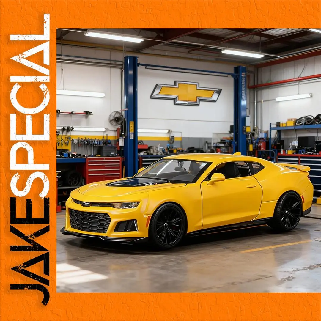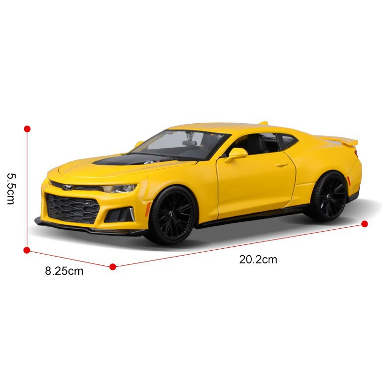 This 1:24 scale model of the Chevrolet Camaro ZL1 from 2017 captures the essence of a modern muscle car with its vibrant yellow finish and authentic details. The diecast construction showcases a sleek and aerodynamic body design with smooth lines, a distinctive black hood, and a large mesh front grille that contributes to its aggressive styling. Additionally, the detailed interior can be seen through the clear windshield, making it a perfect addition for collectors. The black alloy wheels and artistic side vents enhance its sporty appeal, embodying a remarkable miniature representation of the real car.