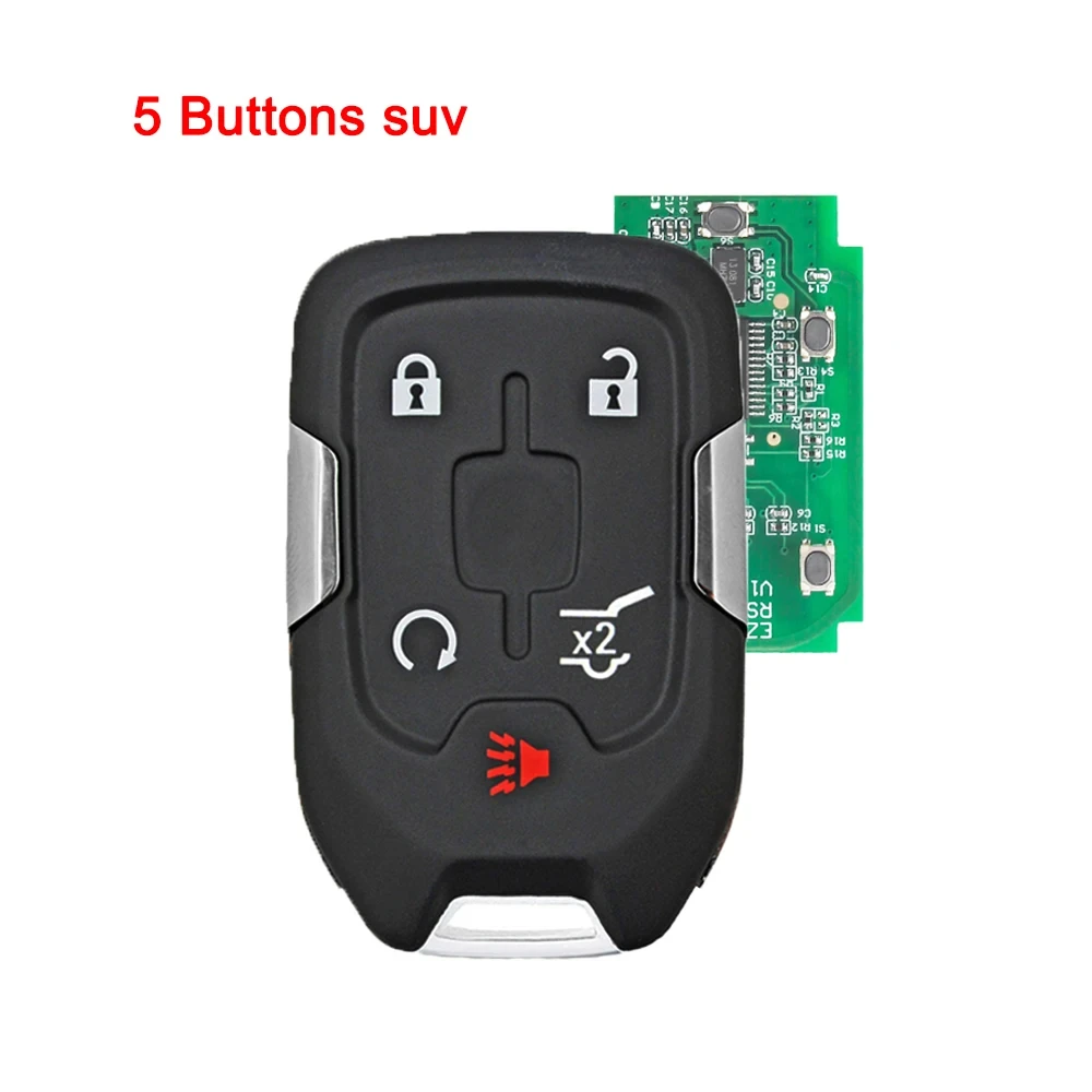 The remote car key you’ve been searching for is here, perfectly compatible with Chevrolet models such as Tahoe, Silverado, Suburban, GMC Sierra, Acadia, Terrain, and Yukon (2015-2020). Its elegant, rectangular design with rounded edges features a matte black finish adorned with shining metal accents. This key boasts customizable configurations with 2 to 5 buttons, enhancing its user-friendly functionality. With a solid construction of ABS plastic and metal, as well as an ID46 chip and a frequency of 315/433 MHz, this key promises reliability. Imagine the convenience of a smooth unlocking experience, knowing it matches your vehicle's needs seamlessly.