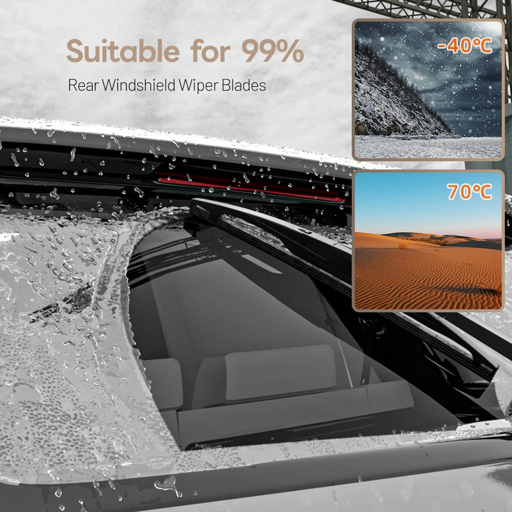 Experience superior visibility with this this Chevrolet Spark M300 rear windshield wiper blade. Crafted with high-grade natural rubber, its aerodynamic, sleek black design ensures optimal performance against weather elements. This durable wiper blade delivers a smooth, chatter-free wipe, thanks to tension memory technology that maintains even pressure along its length. It is designed to match the original size of your vehicle, allowing for direct replacement without any adapters or complications. The boneless construction prevents ice and snow buildup, making it suitable for year-round driving. Easy to install in seconds, this product guarantees long-lasting performance with a lifespan rated at one million wipes. Improve your driving safety today with this high-quality, reliable rear wiper blade.