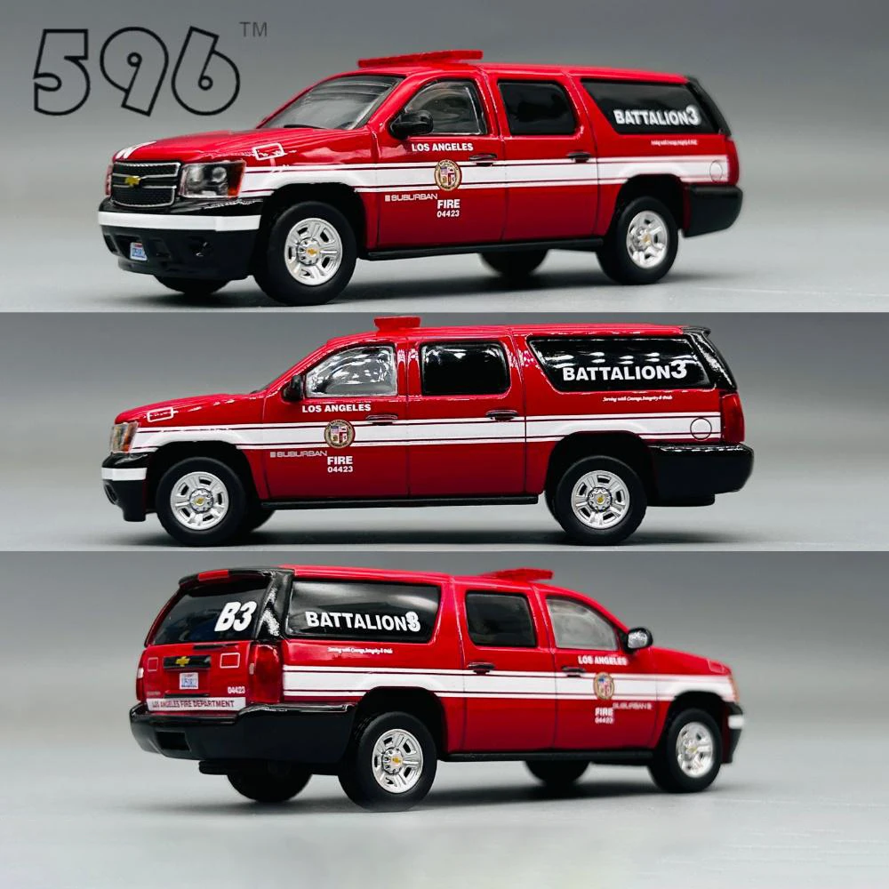 Experience the thrill of owning this exquisite 1:64 scale diecast model of a Chevrolet Suburban styled as a fire department vehicle. Its captivating bright red exterior, accented with striking white lines, reflects a commitment to detail that collectors will appreciate. The “LOS ANGELES” and “BATTALION 3” inscriptions on the side panels enhance its realistic appearance. From the authentic Chevrolet grille to the sleek white wheels, every aspect is crafted to perfection. At approximately 7 cm long, this model serves as a perfect representation of emergency service vehicles, making it a fantastic addition to your collection or display.