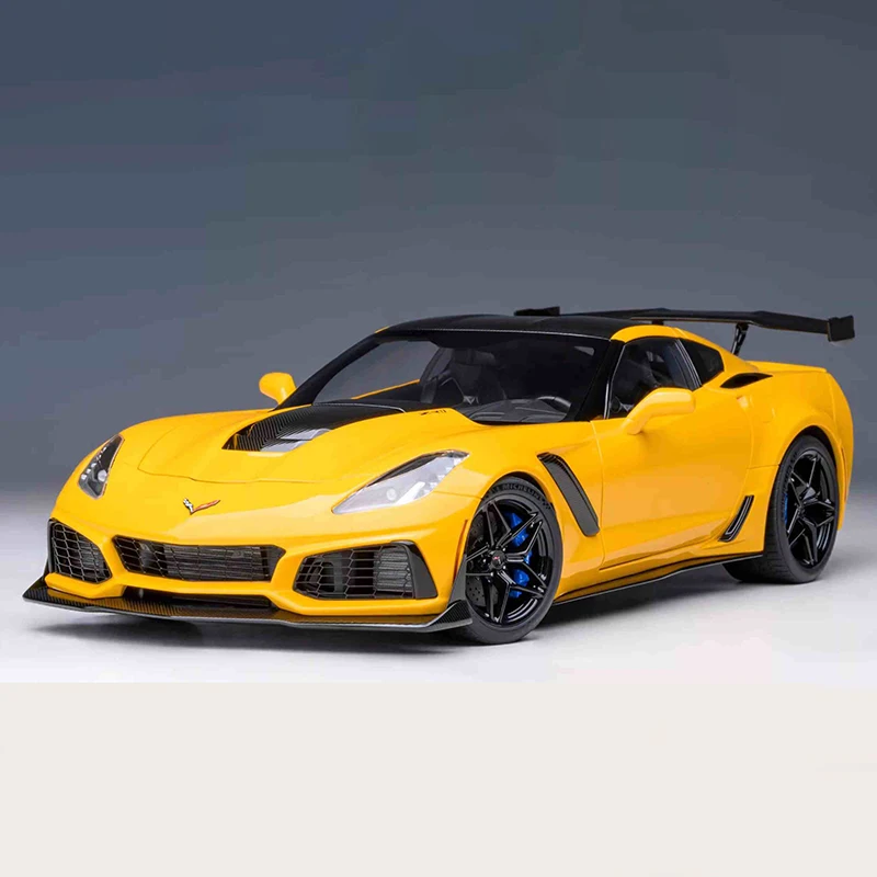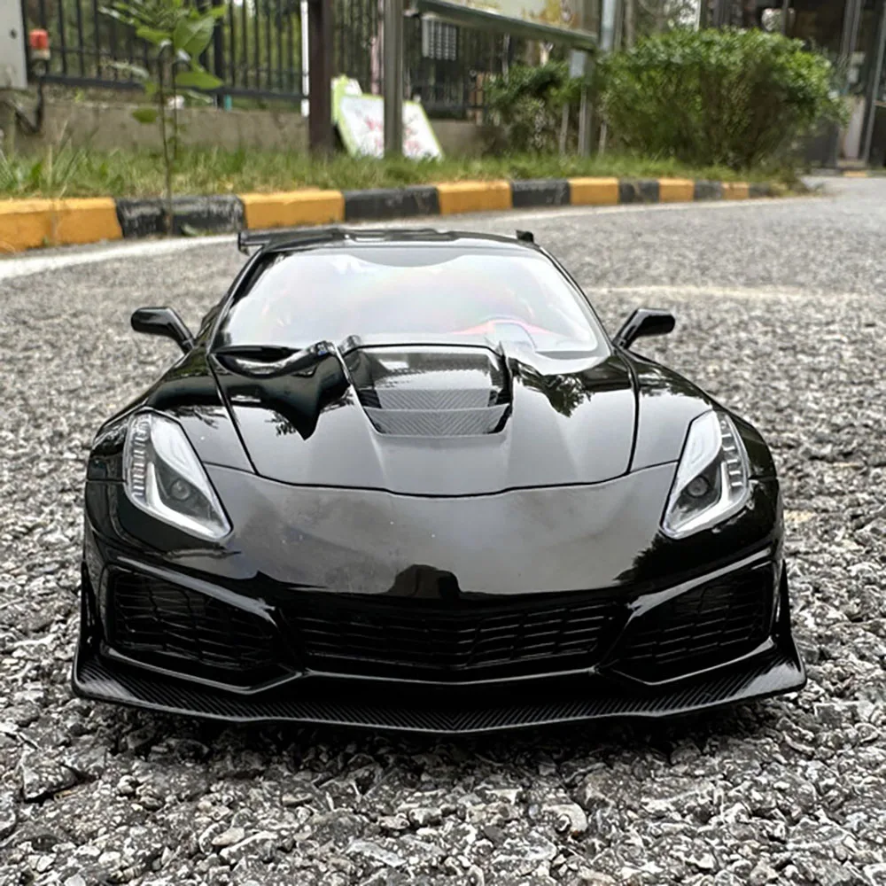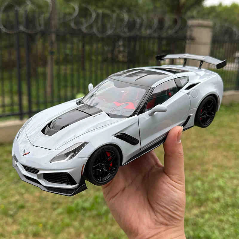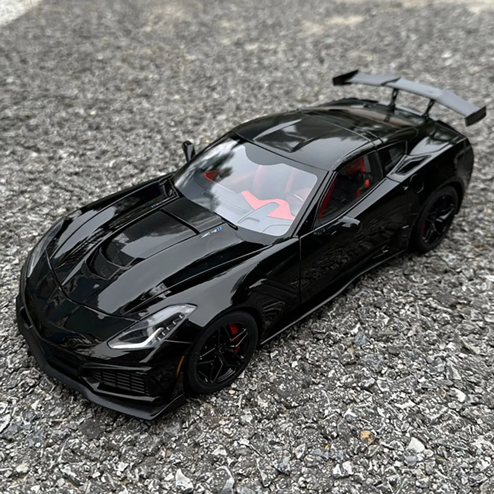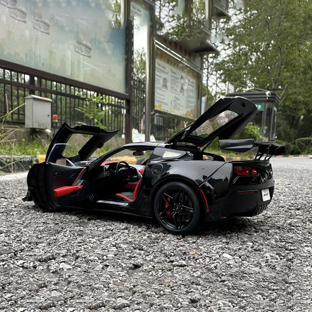 Imagine owning this exquisite die-cast model of the Chevrolet Corvette C7 ZR1, a perfect replica that beautifully captures the essence of this high-performance sports car. Crafted with meticulous attention to detail, this 1:18 scale collectible combines alloy, rubber, and ABS plastic to replicate the sleek lines, aggressive stance, and refined curves of the original vehicle. Its shiny, reflective surface highlights the modern design elements such as the pointed front nose, accents of sharp headlights, wide grille, and integrated rear wing, all adding to its dynamic appearance. Ideal for display, collection, or as a heartfelt gift, this model offers a tangible connection to the thrill and elegance of Corvette's engineering mastery.