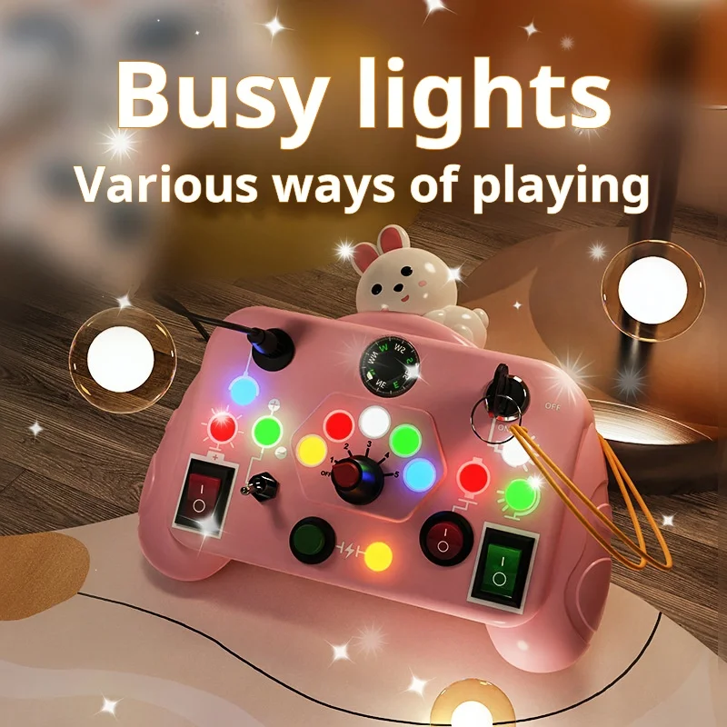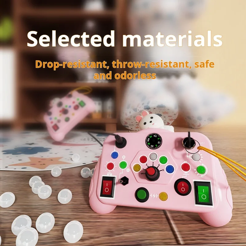 Imagine your child exploring and learning with this vibrant, interactive Montessori busy machine. Its soft pink surface and cheerful colors invite curiosity, while various control elements foster cognitive growth. The sturdy plastic structure, rounded edges, and bright colors ensure safety and engagement. With colorful switches, a rotary knob, and playful details like a compass dial and metallic key, this toy promotes fine motor skills and problem-solving. Designed for children aged 3-6, it encourages imaginative play and early learning. Its durable zinc alloy, plastic parts, and rubber tires guarantee long-lasting fun. Invest in this educational toy to enrich your child's development through interactive, safe, and colorful play experiences that stimulate their mind and senses.