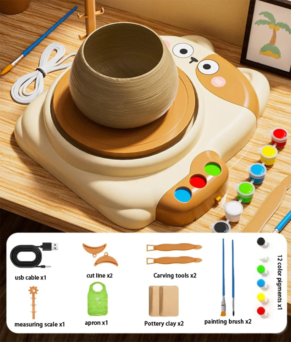 Discover the joy of making art together with this charming pottery machine set. Its playful design and wholesome materials are perfect for inspiring your child's imagination. Whether for holiday preparations or everyday crafty fun, this set promises hours of engaging activities that encourage skill development and creative expression. Invest in quality craft tools that balance safety, fun, and learning. Watch as your young artist transforms simple clay and paints into beautiful, memorable creations that will bring pride and happiness to your family. This set truly offers a wonderful way to nurture artistic talents right at home.