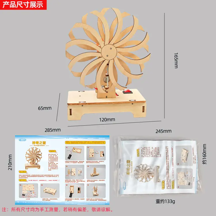 Imagine engaging your child's curiosity with this beautifully crafted science toy, designed to demonstrate the fascinating persistence of vision. Made from natural, light-colored wood, the large, circular “Wonderful Window” wheel features petal-shaped blades radiating seamlessly from a central hub. Its minimalist, handcrafted aesthetic invites exploration and learning as children watch the blades spin smoothly on a sturdy axis, powered by an integrated motor. This visually captivating experiment sparks wonder and encourages educational play, perfect for children aged 6-12 and beyond. Its simple yet elegant design creates a warm and inviting learning environment, making science intriguing and accessible at home or in classrooms. This unique toy blends craftsmanship with educational value, inspiring young minds to discover the magic of light and motion.