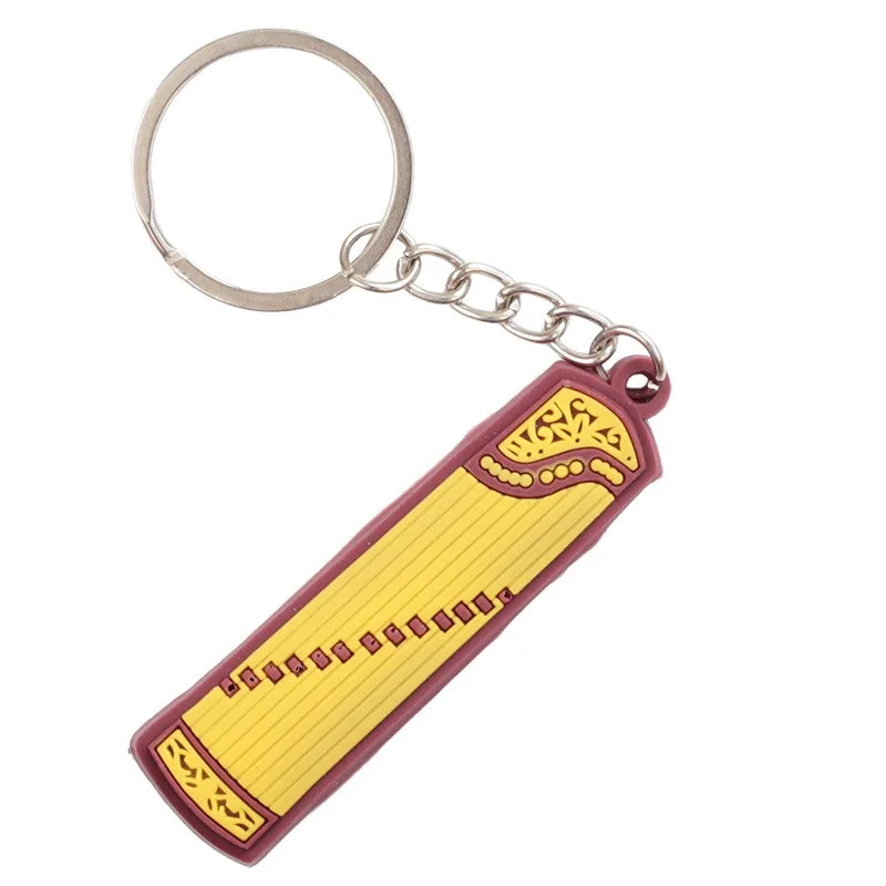 Imagine adding a touch of traditional elegance to your daily accessories with this beautifully crafted silicone keychain. Featuring a detailed design inspired by classical Chinese instruments like the Pipa, Guzheng, Ruan, or Erhu, it captures the essence of Chinese musical artistry. The pendant, approximately 6.5 x 3.5 cm in styles 1-7, is brightly colored in vibrant yellow with maroon decorative markings that highlight the fret lines and adorned patterns, giving it a cultural and artistic appeal. The minimalist round metal ring offers a subtle contrast, making it both functional and visually appealing. Delight in the rich colors and intricate designs that make this a perfect accessory for those who appreciate Chinese tradition and craftsmanship.