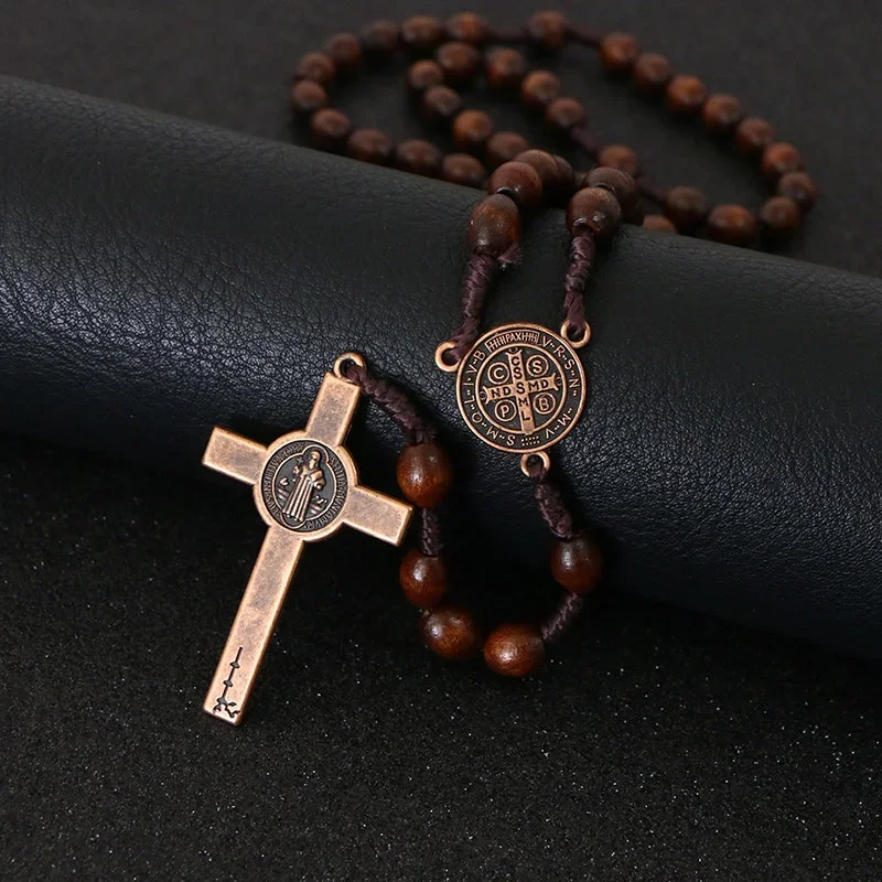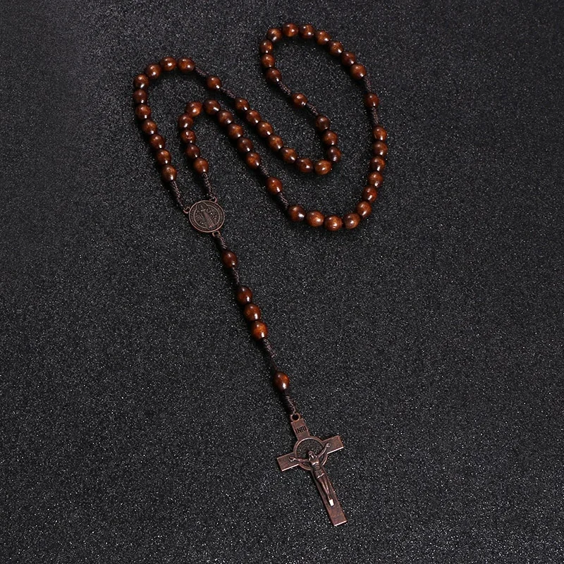 Discover the beauty and serenity of this traditional Christian rosary necklace, crafted with care from high-quality rosewood beads and intricate metal details. Designed for daily wear or special spiritual moments, this necklace embodies devotion and craftsmanship. The durable woven rope and polished wooden beads create a comfortable yet striking accessory, making it ideal for prayer or reflection. The prominent crucifix features a detailed figure of Jesus Christ, complemented by a small medal representing a saint or religious figure, adding thoughtful symbolism. Whether as a gift or personal keepsake, this piece helps you stay connected to your faith, bringing peace and inspiration to your daily life.