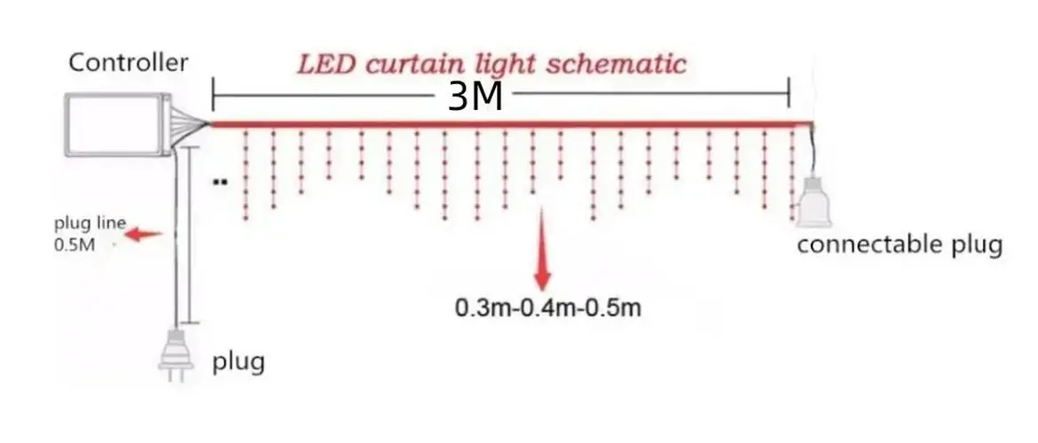 - Designed with a 3-meter length and droop height of 0.3-0.4 meters, perfect for decorating windows, walls, or entire facades easily and attractively.