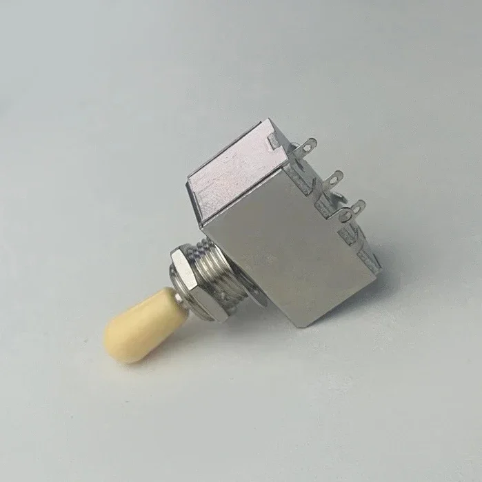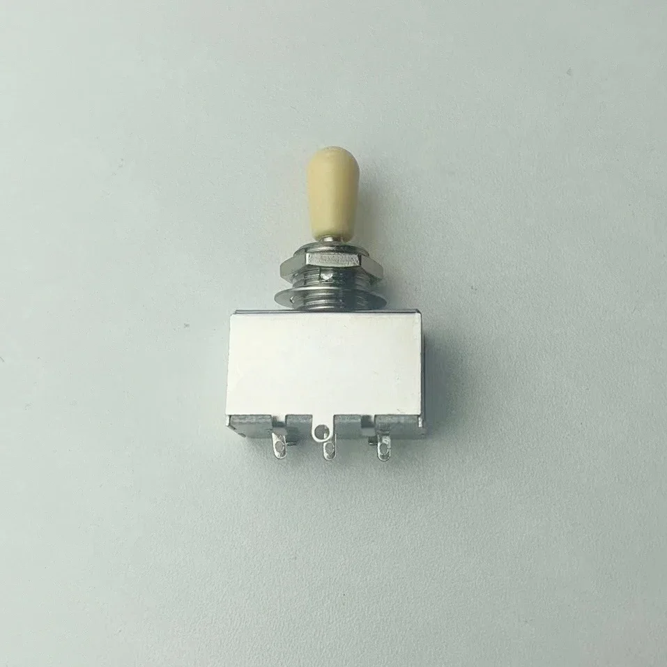 Experience enhanced tonal control with this durable 3-way toggle switch designed for LP-style and other electric guitars. Crafted from robust metal and copper with a corrosion-resistant nickel-colored chrome finish, it measures approximately 50 x 35 mm (1.96 x 1.37″). The switch features both momentary and latching functions, allowing for smooth, responsive pickup selection and seamless tone switching. Its sleek rectangular design is complemented by an elongate tip cap, making it a perfect fit for guitar control panels. Built for reliability and style, this switch offers a high-quality upgrade for guitarists seeking durability and precise sound control.
