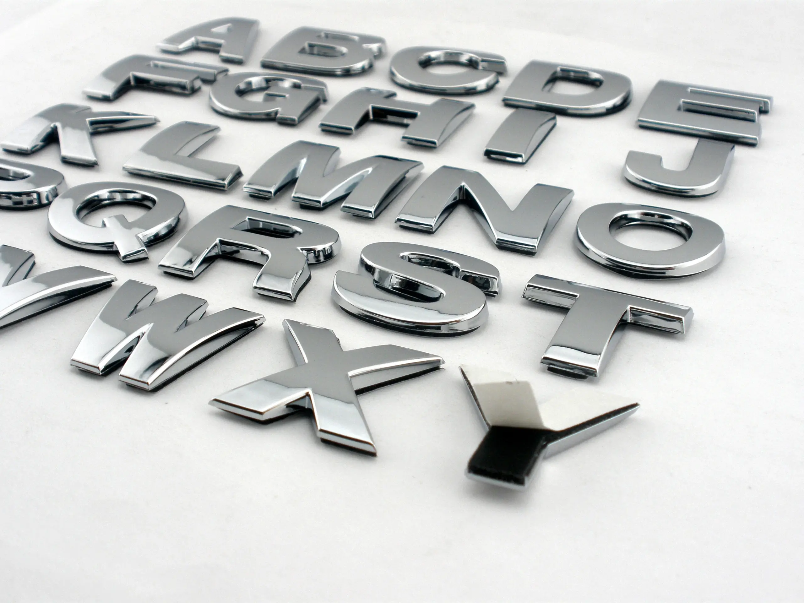 Enhance your vehicle or surface with these 25mm high, 3D chrome plastic letters and numbers, crafted from durable molded ABS plastic. Featuring a complete set with the uppercase alphabet (A-Z) and digits (0-9), each character boasts a sleek, reflective chrome finish with a bold, block style designed for maximum visibility. Easy to apply with peel-and-stick adhesive on clean, flat surfaces such as cars, doors, glass, or metal. UV-protected and resistant to extreme temperatures and car washes, these characters are built to last for years. Perfect for custom signage, auto decoration, or personalizing your space with a modern, polished look.