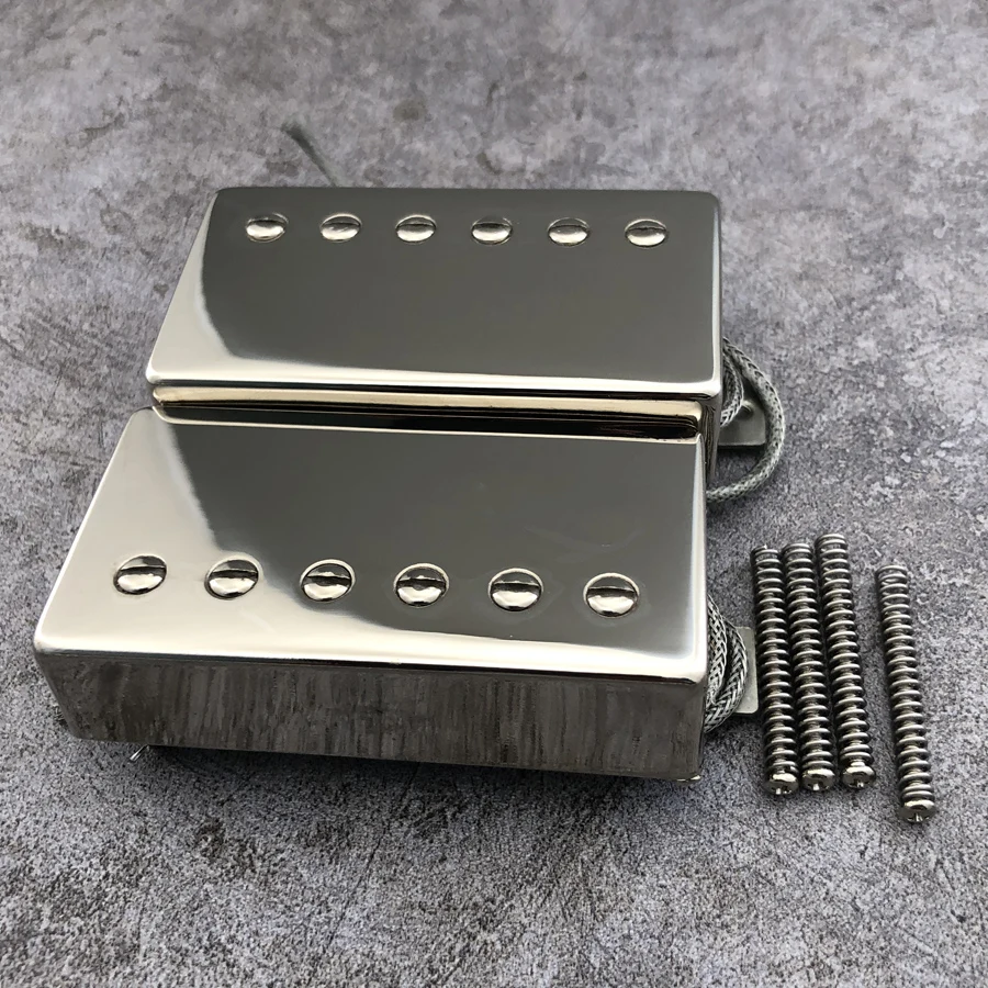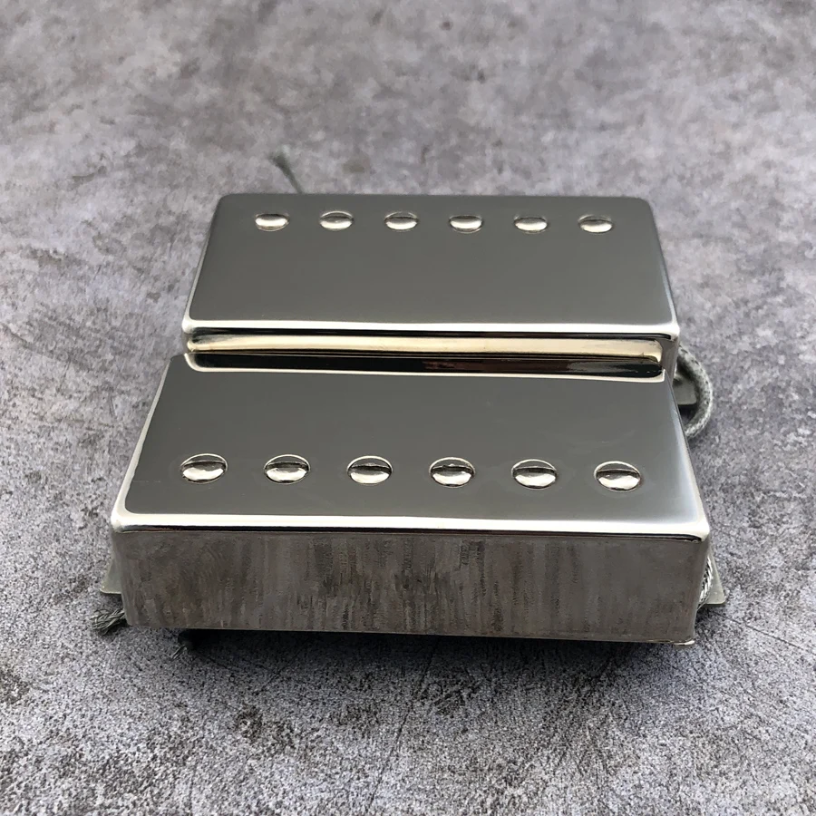 Experience rich, vintage warm tones with these Alnico 5 guitar humbucker pickups, featuring a sleek chrome metal cover and two shielded wires for minimized interference and clear, distortion-free sound. Constructed from durable alloy material, these pickups do not require batteries, ensuring easy installation and maintenance. Designed for classic music styles, they deliver high-quality performance with Alnico 5 magnets that enhance tonal warmth. Made in South Korea, these precisely crafted pickups are ideal for guitar enthusiasts seeking reliable, high-performance replacement parts that combine vintage aesthetics with modern craftsmanship.