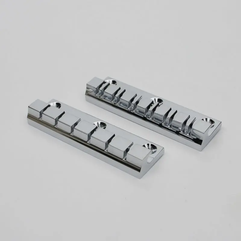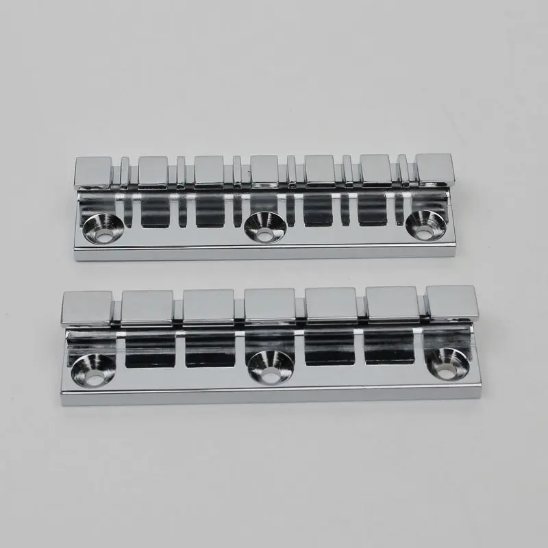 Elevate your electric guitar setup with this high-quality chrome bridge, designed for 6-string and 12-string configurations compatible with double-headed SG guitars. Crafted from durable metal with a sleek, reflective finish, it offers a modern, polished look that seamlessly integrates into your instrument. The bridge features a precise rectangular shape with rounded edges, including multiple flat, raised saddle blocks for secure string positioning. With model options BT6 for six strings and BT12 for twelve strings, this bridge ensures optimal performance and durability. Easy to install, it’s the perfect upgrade for achieving professional tone and sustain in your electric guitar.