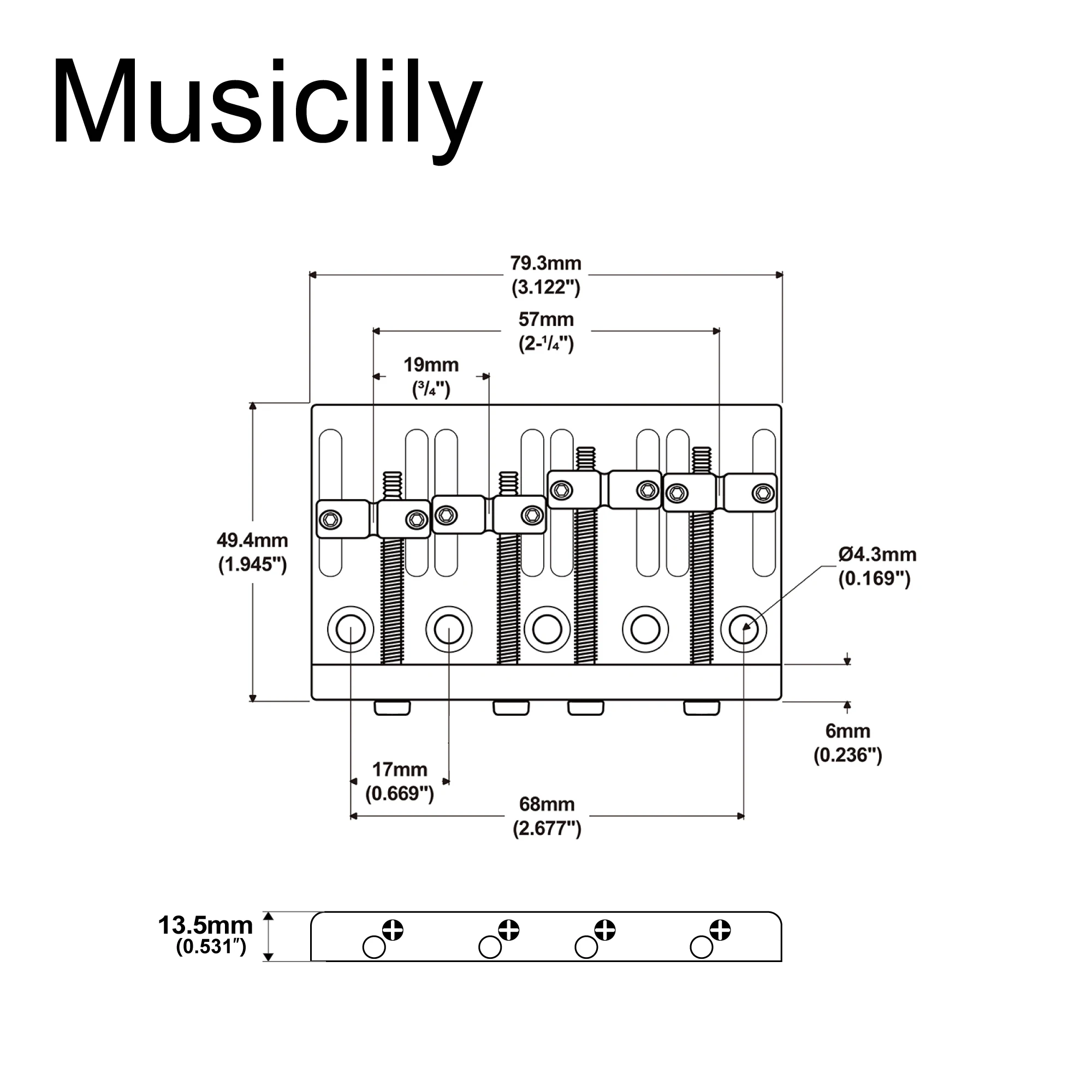 - String spacing of 57mm (2-1/4″) and screw mounting hole spacing of 68mm (2-43/64″) ensure precise installation and alignment.