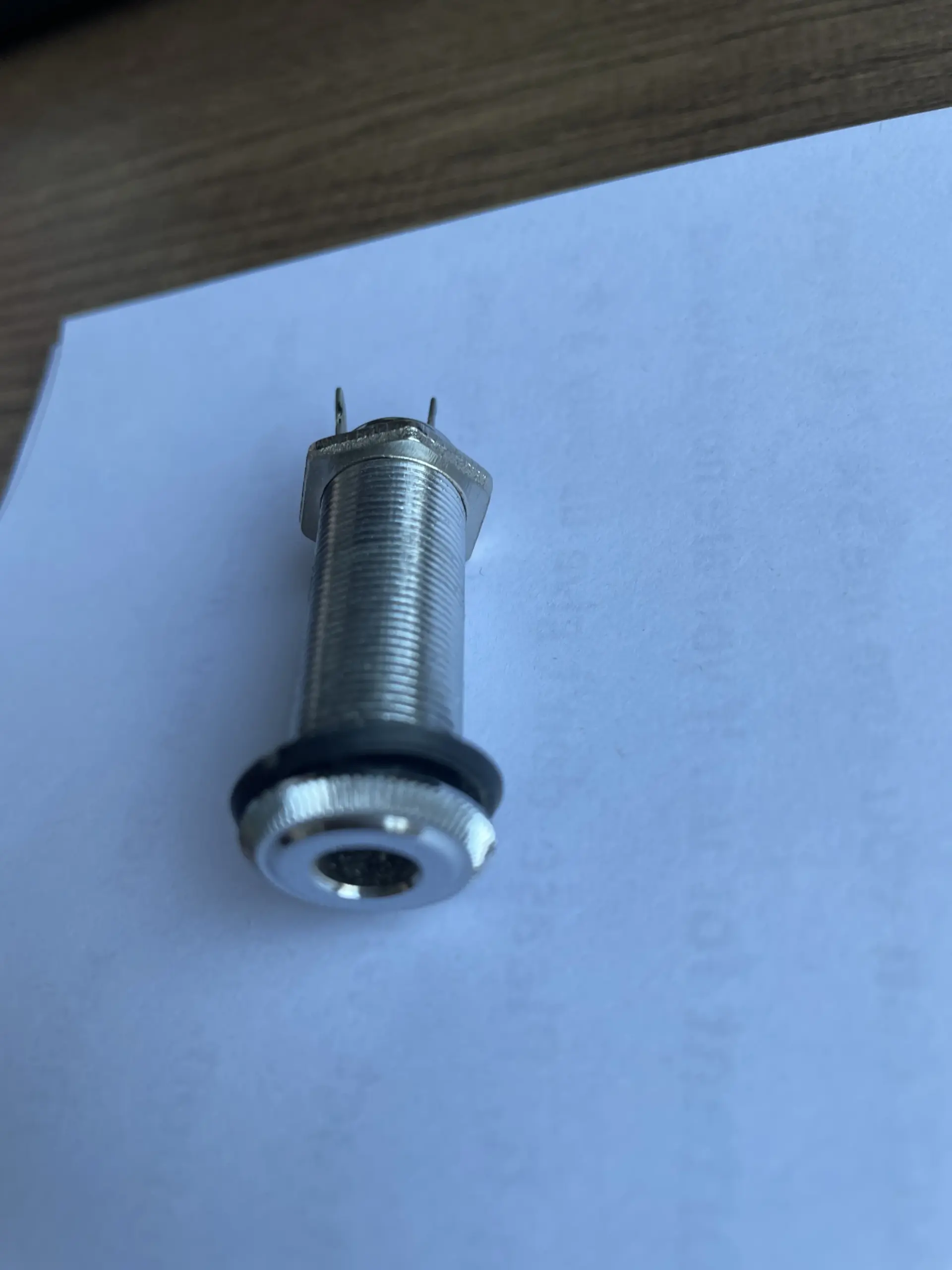 Experience seamless connectivity with this high-quality, chrome-plated guitar or bass input/output jack. Its polished metallic finish reflects elegant craftsmanship, perfect for replacing worn or damaged hardware on your instrument. The cylindrical, threaded design ensures secure installation by screwing directly into your guitar or bass body, providing a stable connection that enhances durability and signal transfer. Its sleek appearance adds a professional touch to your instrument’s aesthetics while maintaining practical function. Whether you're customizing your guitar or bass or repairing an existing one, this DIY replacement part offers an easy and reliable solution. Designed with precision metal components, it guarantees longevity and excellent conductivity for optimal sound performance. Trust this component to elevate your musical setup with style and functionality.