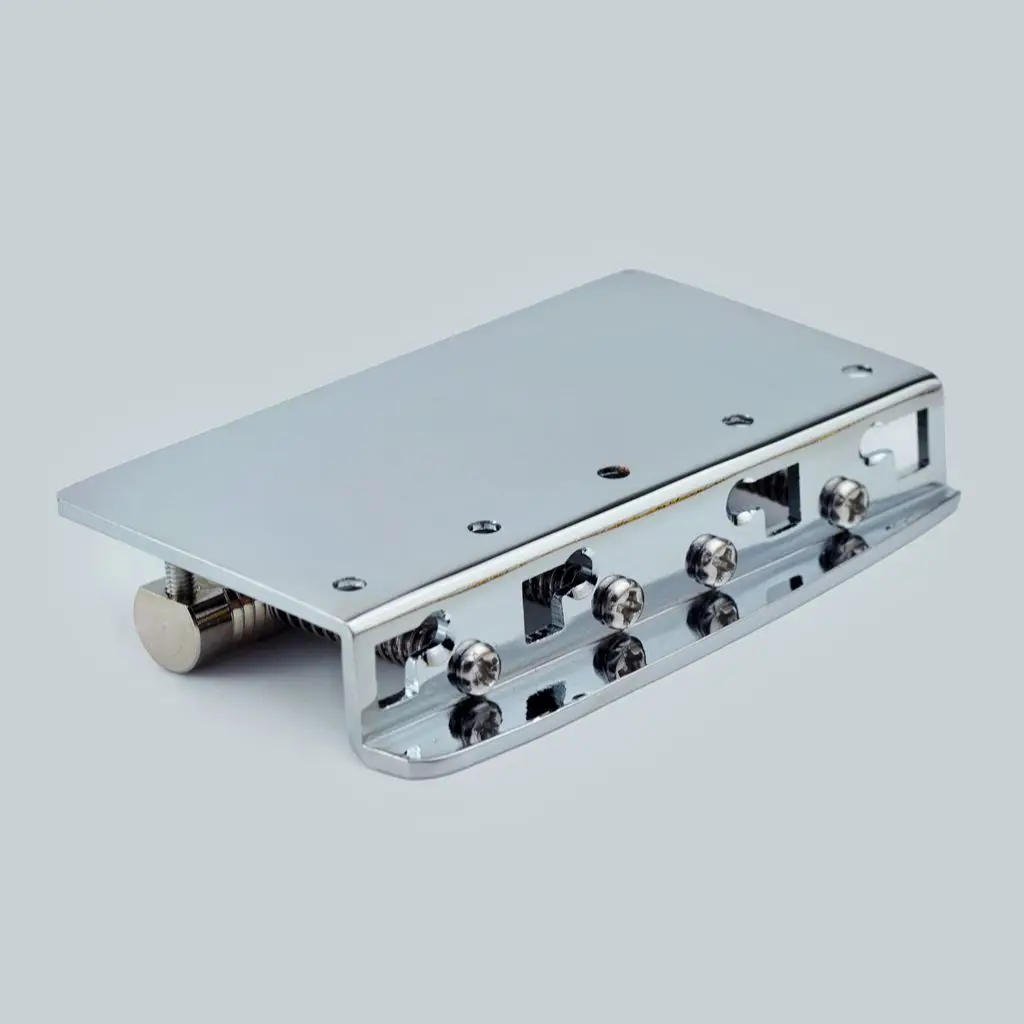 - Made from high-quality polished chrome, this bridge offers a reflective, stylish finish that enhances your bass guitar's aesthetic appeal.