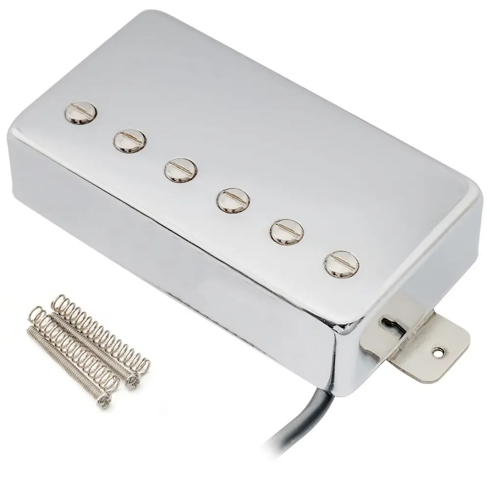 Transform your guitar’s sound with this chrome-covered Alnico V humbucker for the bridge position, designed for versatility across styles like overdrive, hard rock, and blues. Measuring 52.5mm pole piece spacing and 78mm mounting hole distance, it features six adjustable pole screws, a resistance of 16.8KΩ (±0.5KΩ), a durable plastic bobbin, and a polished, reflective chrome top cover that adds a sleek, modern aesthetic. Compatible with Les Paul, SG, ES335, and similar guitars, this high-quality pickup enhances tonal richness and clarity. Includes mounting accessories, with screws adaptable for your specific guitar setup, making it an ideal upgrade for players seeking authentic vintage-style tones.