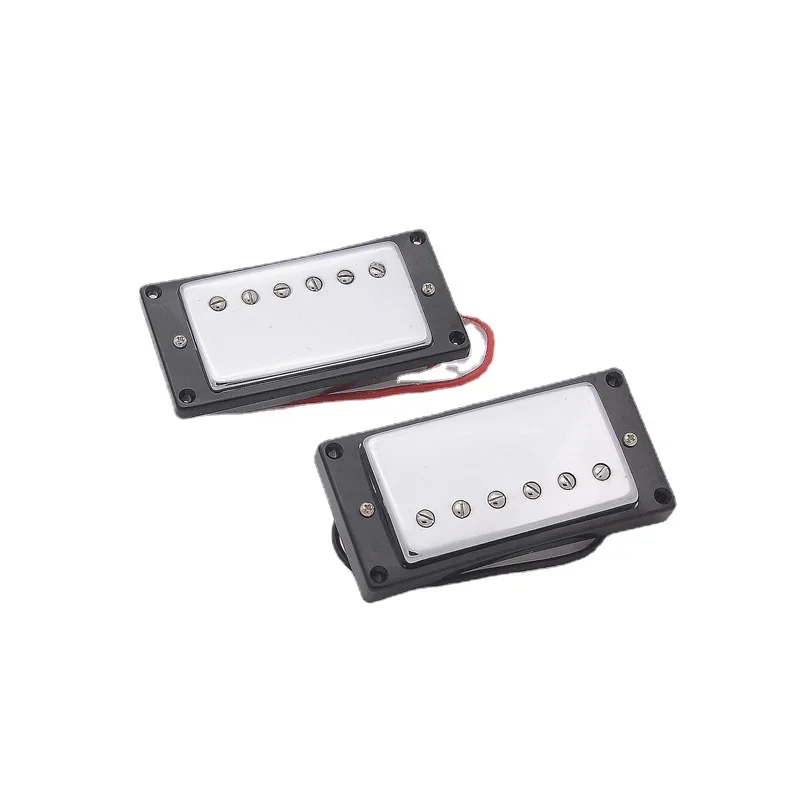 Transform your guitar’s sound and style with this premium set of six chrome-covered Alnico humbucker pickups. Designed for LP-style guitars, these pickups combine sleek aesthetics with powerful performance. The reflective chrome covers add a polished, modern touch, enhancing your guitar's visual appeal. Their smooth, glossy surfaces reflect light beautifully, giving your instrument a professional look. The compact, rectangular metal baseplates with adjustable pole pieces allow for precise tone customization. Each pickup is mounted on a durable black plastic frame with screw holes for easy installation. Whether you're aiming for warm, vintage tones or punchy, high-output sounds, this set elevates your gear and inspires your playing every time you pick up your guitar.