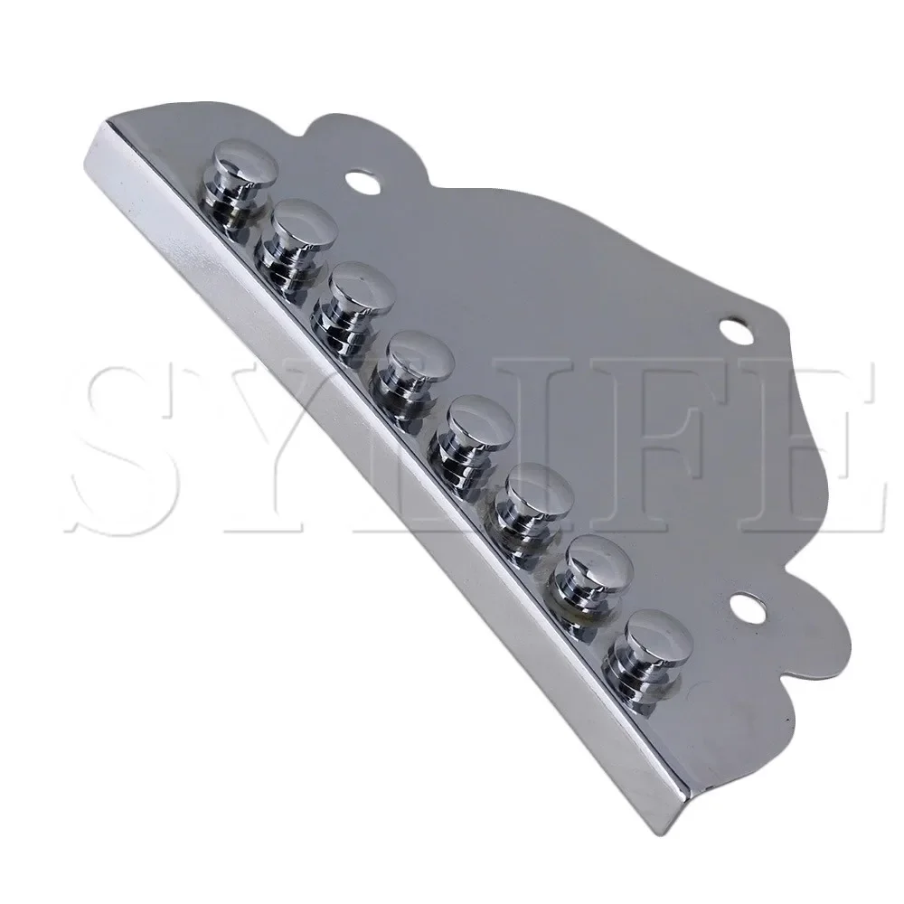 This chrome metal mandolin and cigar box guitar tailpiece measures 70x41mm (2.76 x 1.61″) and weighs 13 grams, crafted from durable zinc alloy with a corrosion-resistant chrome finish. Its sleek, minimalist design features smooth, rounded contours and a flat, slightly angled base, offering a modern aesthetic. Equipped with small, evenly spaced screw holes for secure attachment, it is unpre-drilled to allow for customized installation. Perfectly suited to enhance tone, volume, and sustain, this high-quality tailpiece provides both practical functionality and stylish simplicity for adult musical enthusiasts seeking reliable upgrade components.
