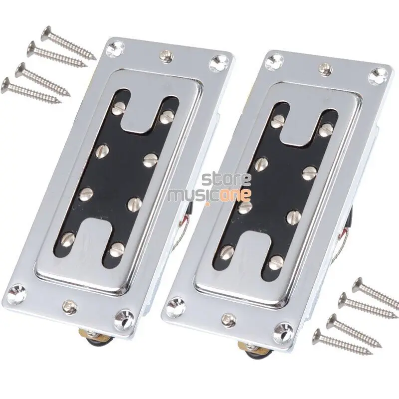 Experience the perfect upgrade for your bass guitar with this high-quality mini style dual-line humbucker pickup. Crafted with a polished chrome metal casing, it offers a modern, reflective look that adds style and sophistication. The black central portion highlights the dual magnetic pole pieces, precisely aligned in two parallel lines for balanced sound. Designed for versatility, this pickup can seamlessly replace or upgrade your bass's neck, bridge, or combined position. It features ceramic magnets that deliver powerful, clear tones. With its compact, minimalist design, it integrates smoothly into your instrument, enhancing both aesthetics and performance. Ideal for bass enthusiasts seeking durability, style, and exceptional sound quality.