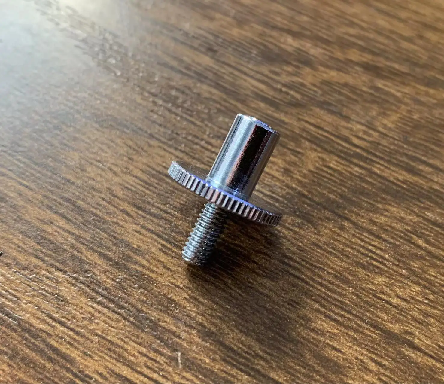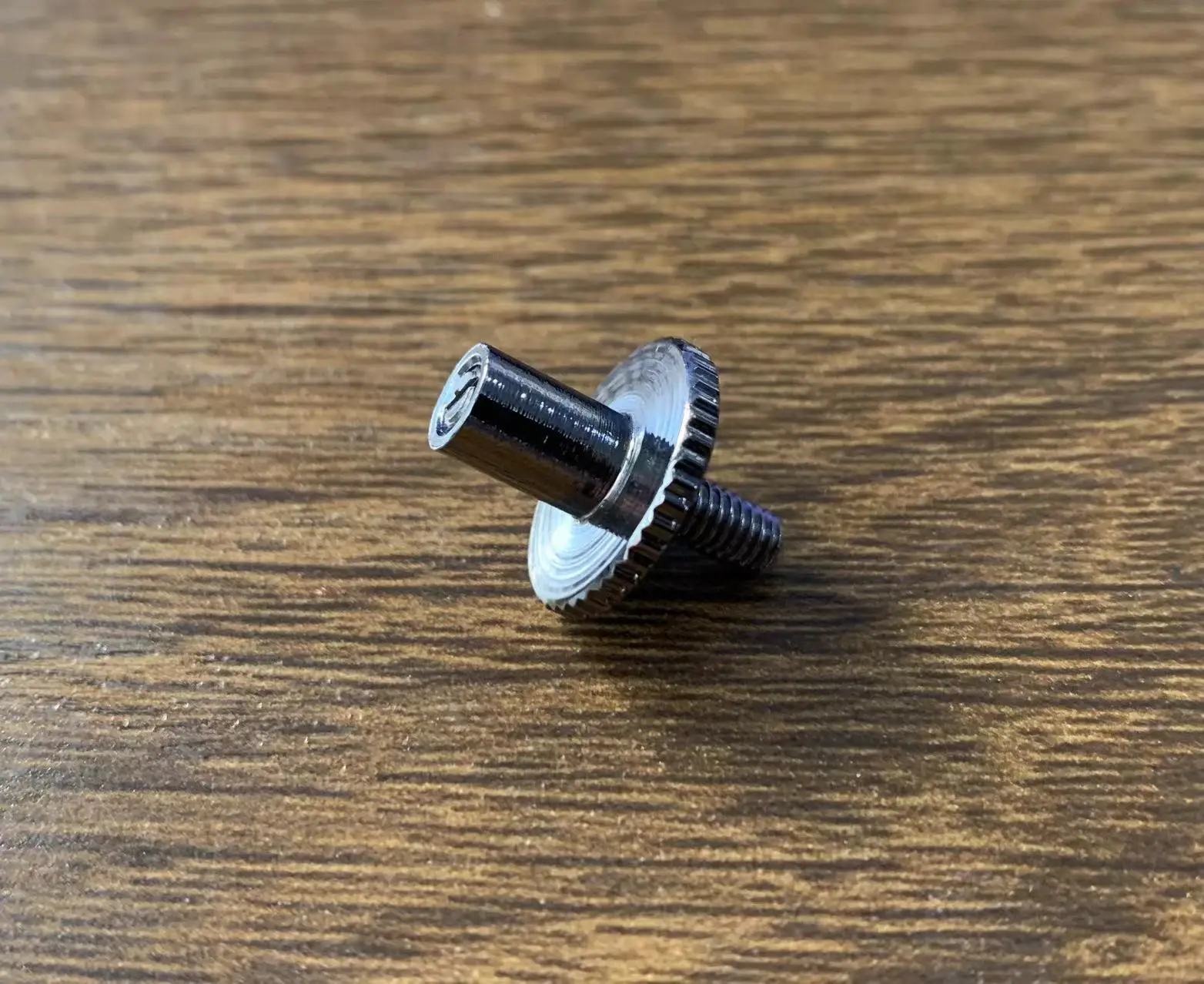 This high-quality guitar accessory features a chrome or nickel finish, designed as a height-adjusting thumb wheel post for jazz archtop guitars. It functions as a bridge screw component, allowing for precise adjustments of the guitar bridge height. Crafted with a sleek, reflective metallic surface and a knurled thumb wheel for easy, tactile control, this compact component combines minimalist design with durability. Originating from Korea, it is CE certified and compatible with various jazz archtop models, making it an essential upgrade for tuning and maintaining optimal action on your guitar. Enhance your instrument’s performance with this expertly crafted, precise adjustment part.