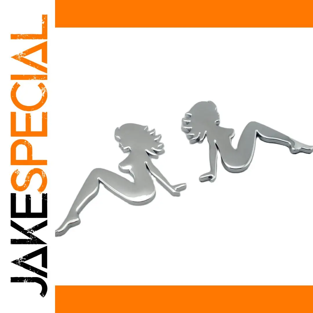 Transform your vehicle’s look with this pair of chrome-colored pin-up girl emblems, perfectly capturing a vintage and provocative aesthetic. Crafted from durable ABS plastic, these 9×6 cm shiny emblems showcase sleek silhouettes of seated, curvy women with flowing hair, exuding playful allure and retro charm. The reflective chrome finish provides a high-end metallic appearance that enhances any Volkswagen vehicle, whether on the bumper or fenders. Easy to install with peel-and-stick backing, these emblems are UV protected and unaffected by extreme weather or car washes, guaranteeing years of vibrant shine. Elevate your car's personality effortlessly, and enjoy personalized styling with our available custom design options.