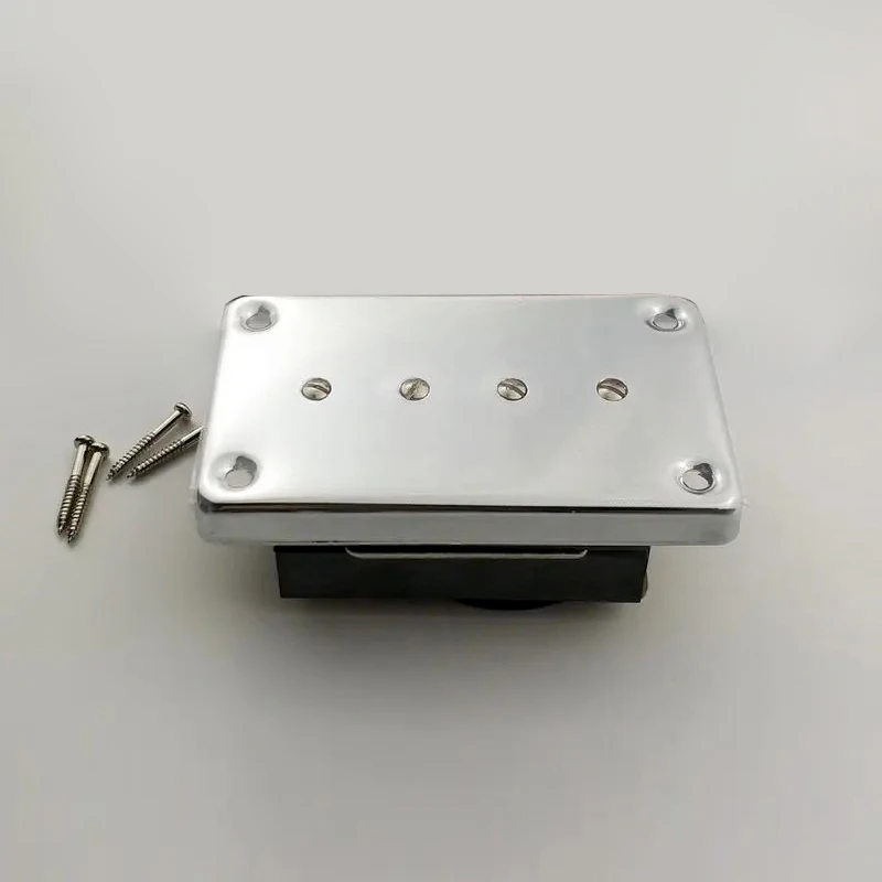 Enhance your bass guitar with this high-quality, chrome-finished Sidewinder Mudbucker style pickup designed for 4-string basses. Crafted from durable metal, it features a resistance of 1.2k ohms for clear, powerful sound. Its sleek, reflective surface and streamlined rectangular shape with rounded edges offer a modern, polished look, complemented by a black rectangular base. The included black wire with stripped ends ensures easy installation, making it an ideal upgrade for tuning or electronic modifications. Built for reliability and performance, this pickup embodies a contemporary industrial aesthetic while delivering the sound quality you demand for your bass guitar.
