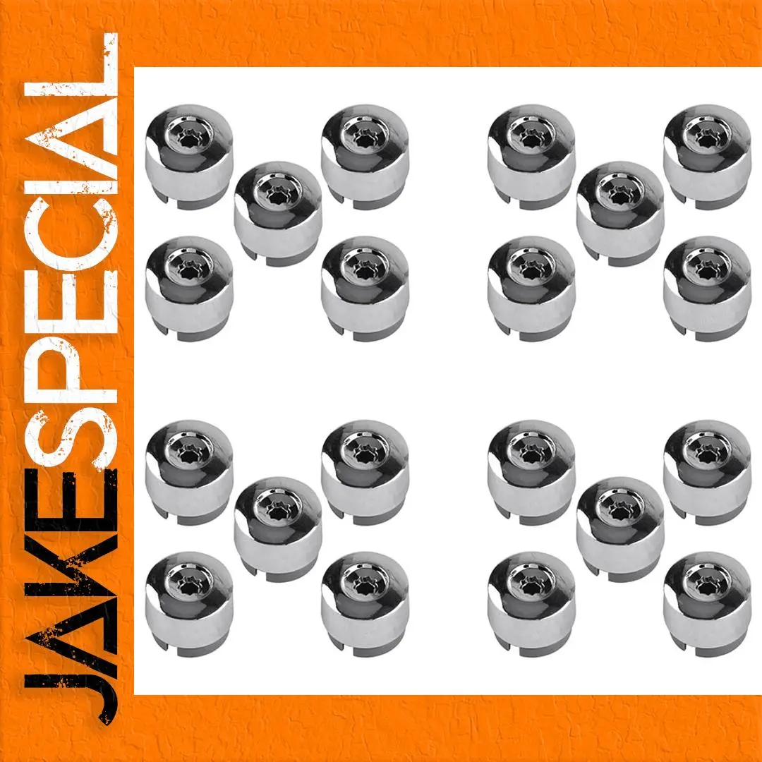 Elevate the look of your Touareg by accessorizing with this set of 20 chrome wheel lug bolt nut cap covers. Each cap features a stunning glossy silver finish that catches the light beautifully, providing a sophisticated touch to your vehicle. Crafted from durable plastic, these caps are designed to resemble polished metal, enhancing their overall appeal. Their round, slightly domed shape and hexagonal recess ensure a perfect fit over your wheel lug nuts, establishing a sleek and uniform look across all your wheels. With an exact match for models from 2004 to 2015, this set guarantees both style and compatibility.