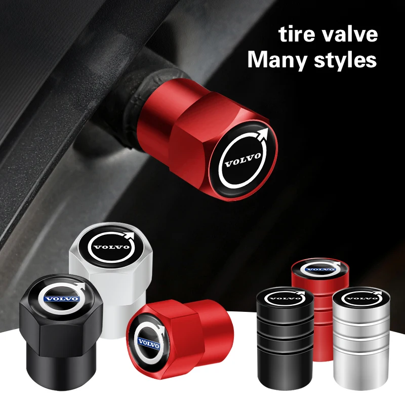 - Technical specifications: dimensions conform to standard valve sizes, material is corrosion-resistant metal alloy, available in glossy or semi-matte finish, packed as a set of four caps.