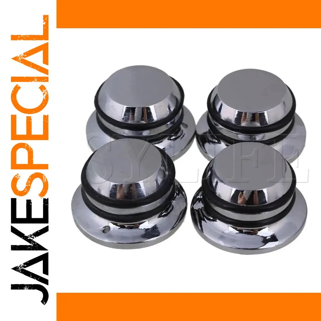 - Set of four silver, chrome-finished knobs made of durable zinc alloy with a reflective, glossed surface for a sleek, modern look.